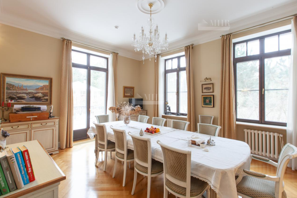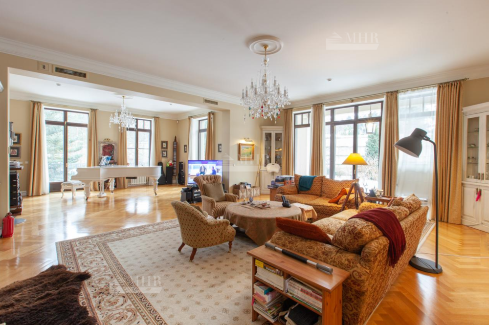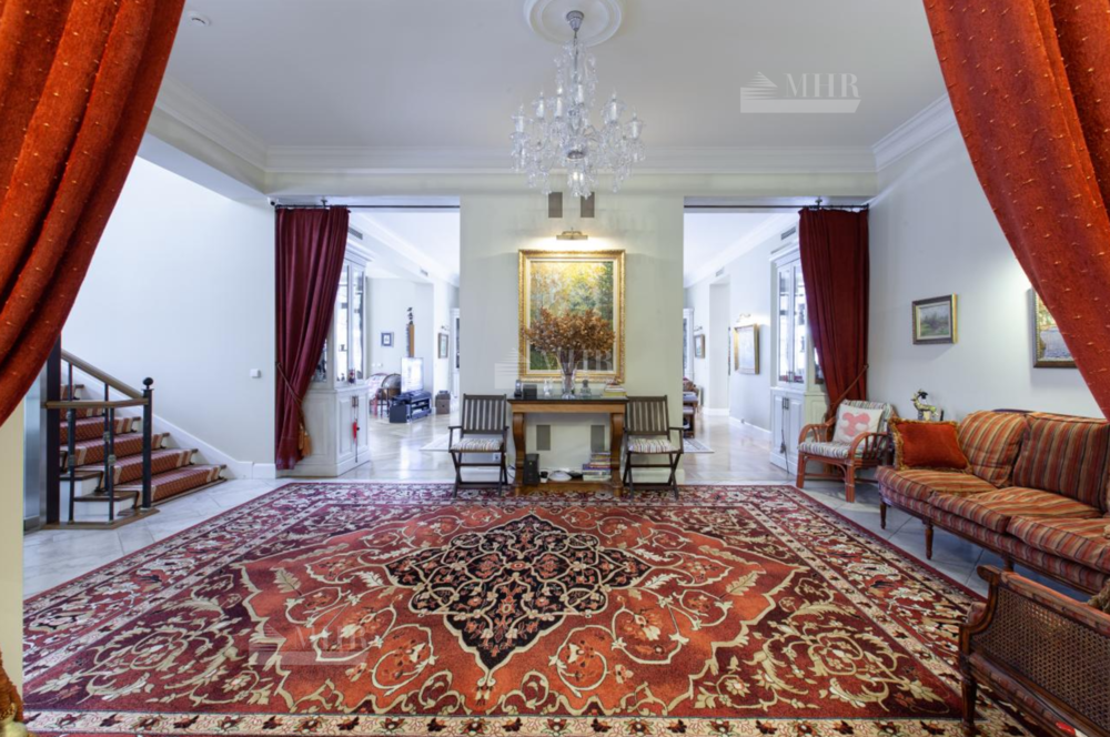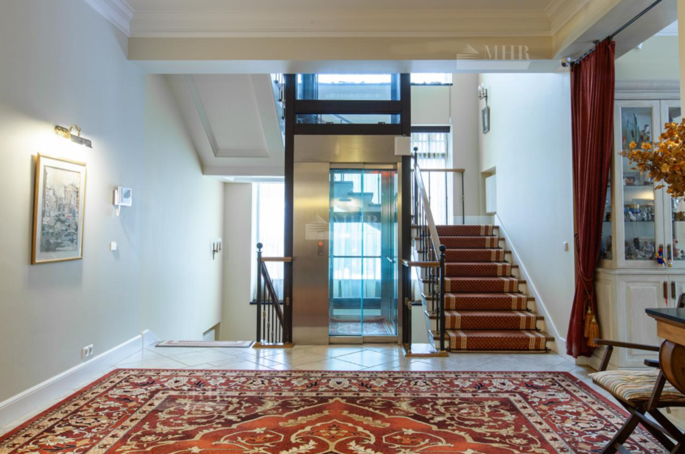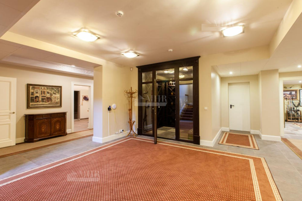 Предлагается дом на продажу, полностью готовый для проживания, для комфортного передвижения в доме обустроен лифт. Стиль -  неоклассицизм. При отделке использованы материалы и оборудование ведущих английских и европейских производителей. В доме 6 спален, каждая с гардеробной комнатой, 7 санузлов, финская и турецкая бани, домашний кинотеатр, винный и продуктовый погреба, спортивный зал, оранжерея. В доме 4 полноценных этажа. На территории выполнен ландшафтный дизайн с живописным прудом. На участке расположены отдельно стоящий гараж на 2 м/м с квартирой для персонала на 2 этаже и всесезонная теплая беседка с каменной печью и встроенным мангалом.