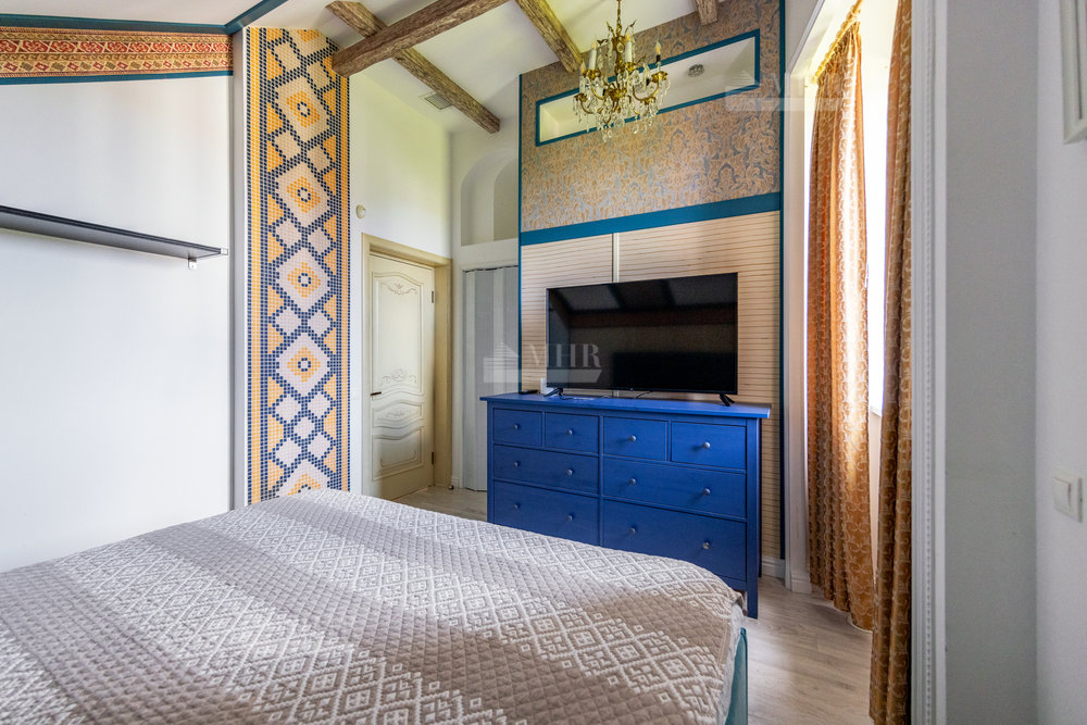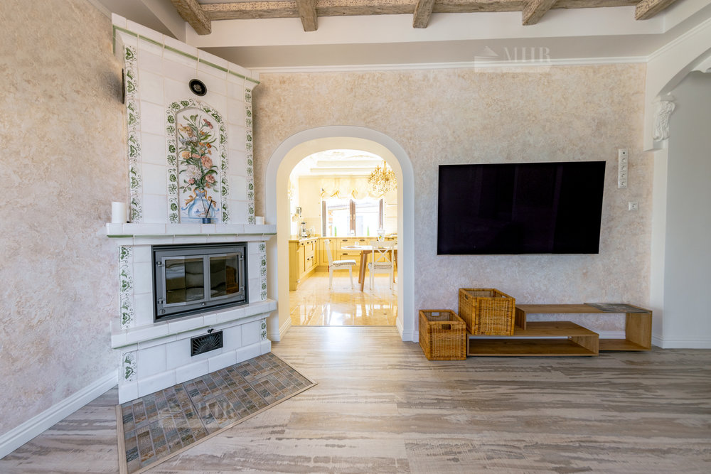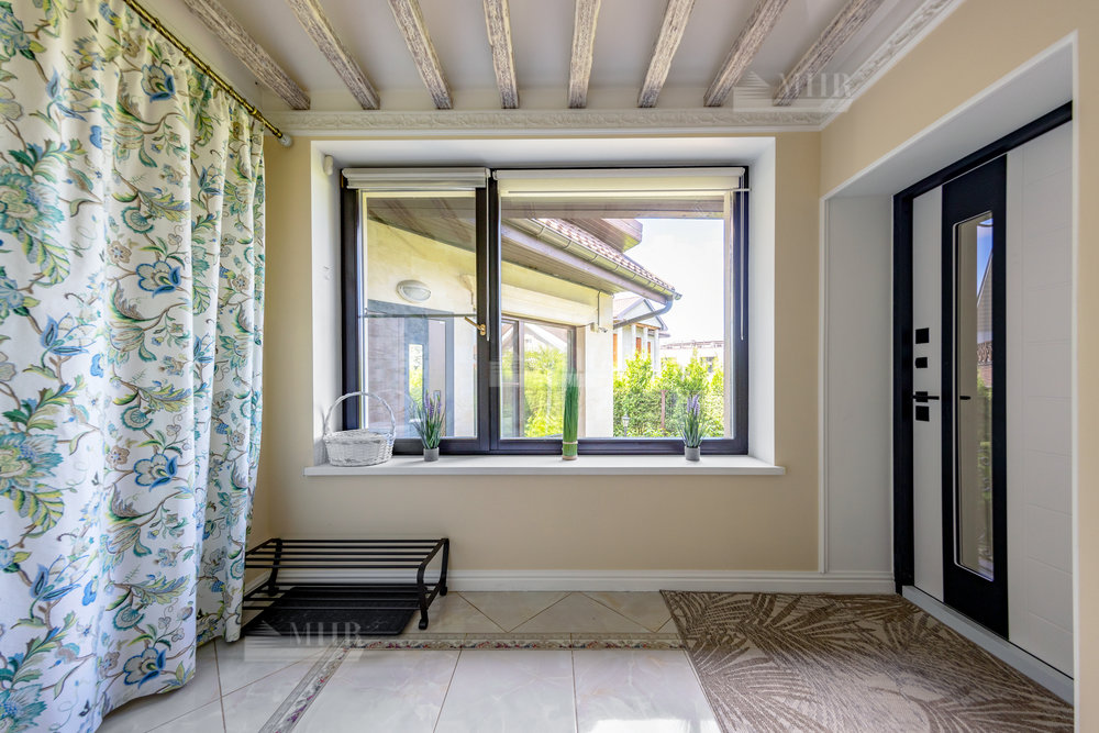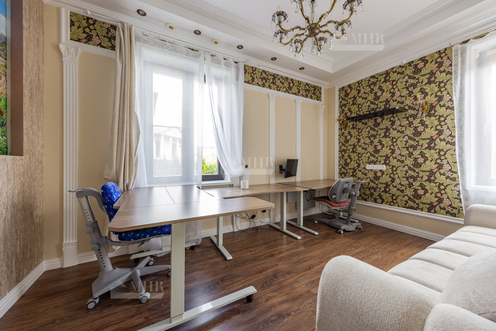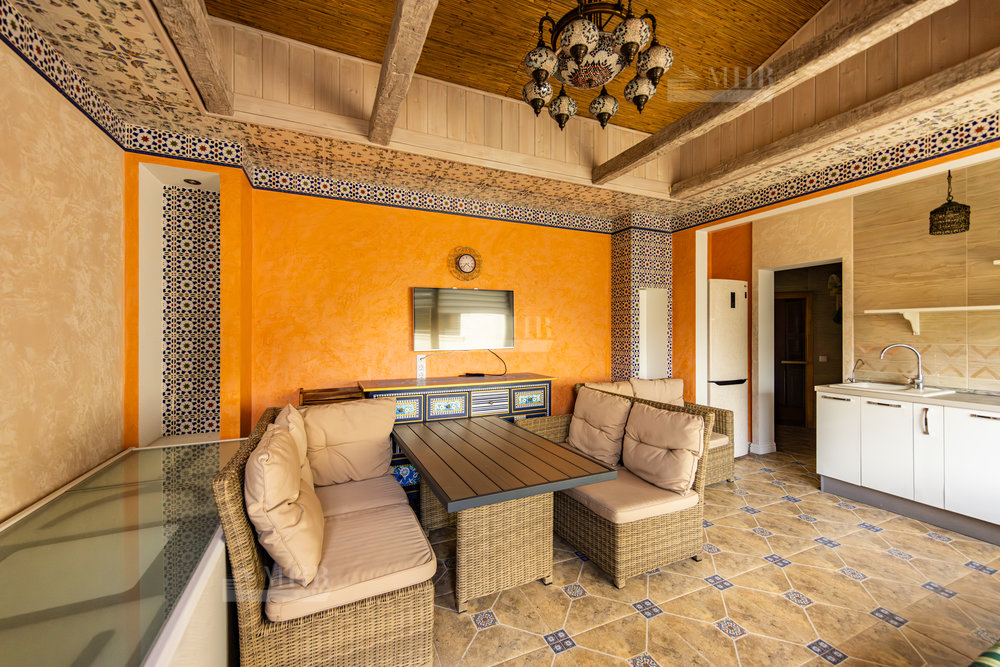 Дом выполнен в стиле прованс с ручной росписью, в светлых тонах, с большими витражными окнами с видом на ухоженный зеленый сад и многолетние туи. Обставлен новой мебелью и техникой 2025 года.