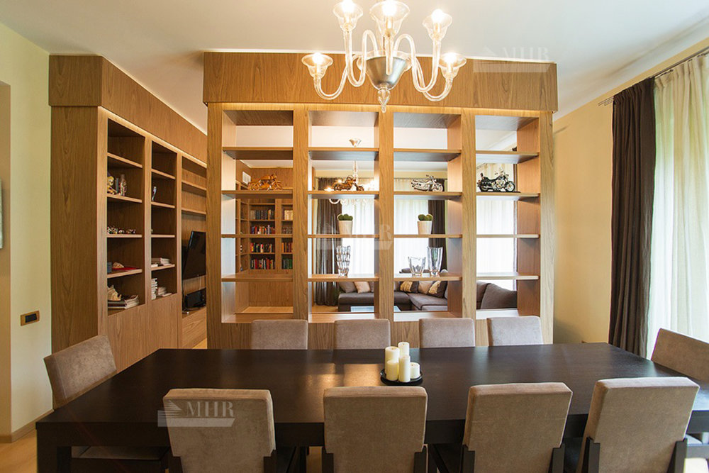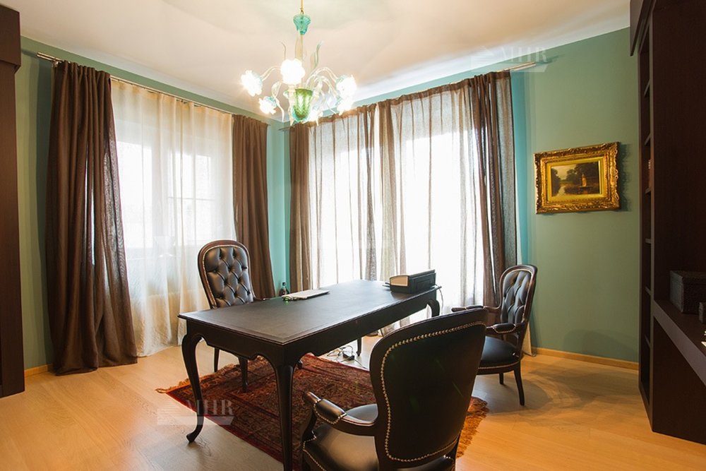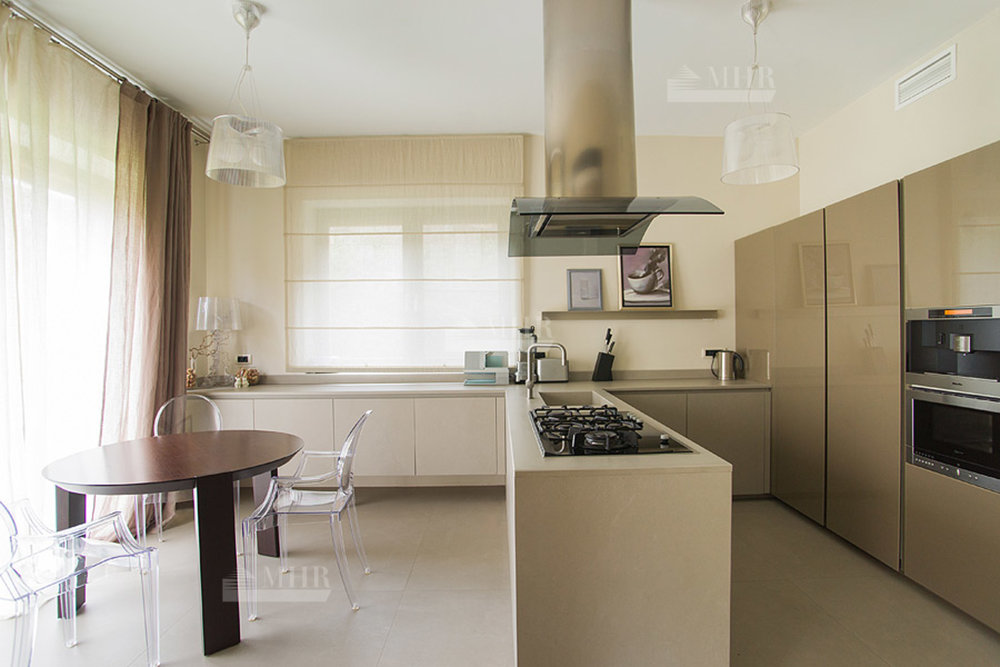 Итальянская мебель от таких производителей как Sellaro,Kartell,MODULNOVA, Zanotta.Паркет Listone Giordano. Свет: люстры из венецианского стекла La Murrina, FLOS. Бытовая техника Miele, NEFF, Kuppersbusch, Liebherr. 4 холодильника включая винный.