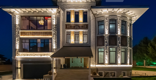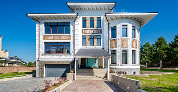 Цоколь с окнами: баня на дровах, комната отдыха с камином, гараж на 2 а/м, бойлерная, кладовая, постирочная, с/у.