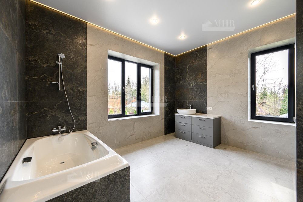 В отделке использованы дорогие материалы, сантехника Jacob Delafon. Все коммуникации - центральные (газ, водоснабжение городского качества, канализация), интернет-оптоволокно.).