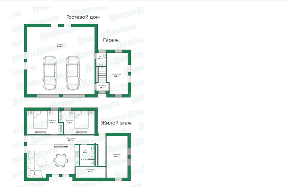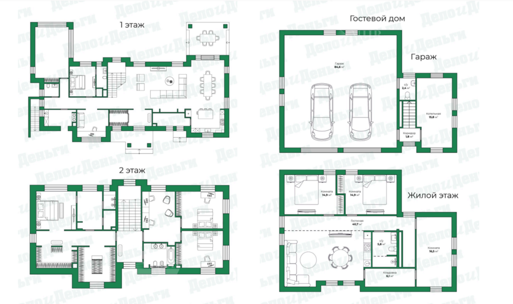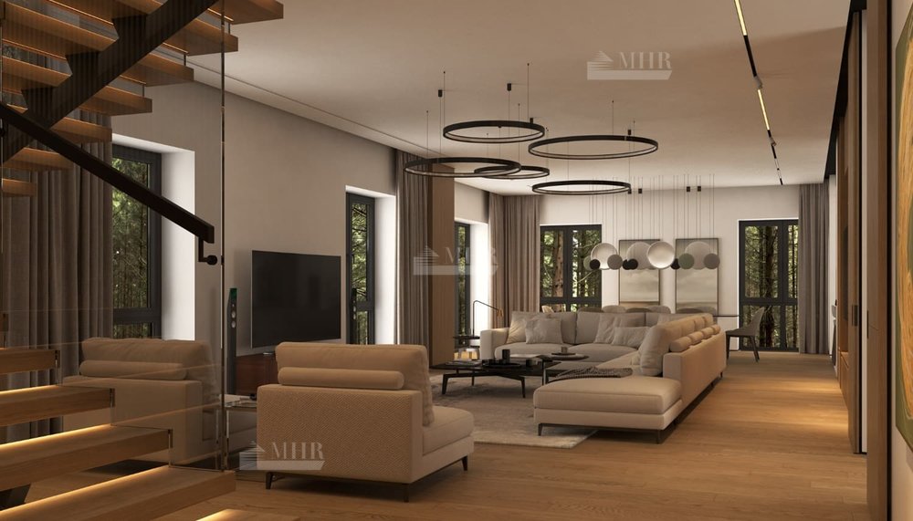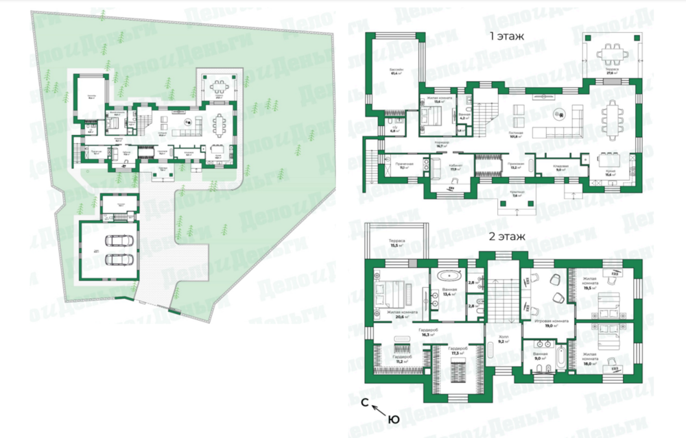 Предлагаем к продаже коттедж, состоящий из: главного дома - 575,4 кв.м., гостевого дома - 217,5 кв.м (под ключ с мебелью) и земельного участка прямоугольной формы площадью 22 сотки.