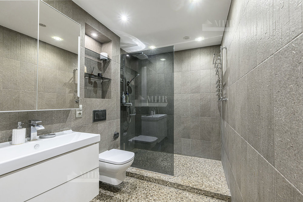 Отапливаемый гараж 84,6 кв.м. рассчитан на два автомобиля, оборудован автоматическими воротами, вентиляцией, сигнализацией, со своим санузлом.