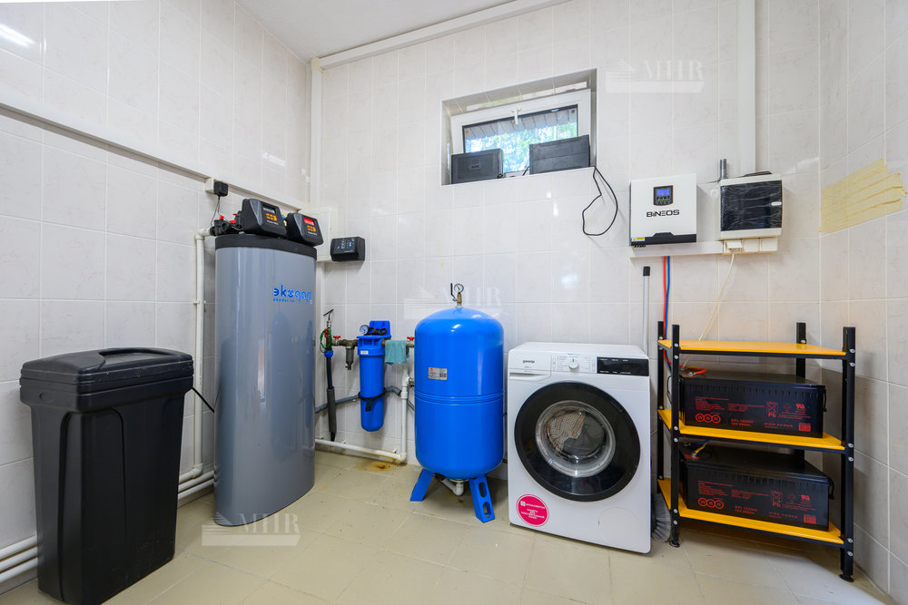 Котельная рассчитана на 6 контуров, обслуживает основной и гостевой дом, снабжена системой бесперебойного питания, имеет бойлер горячей воды на оба дома.