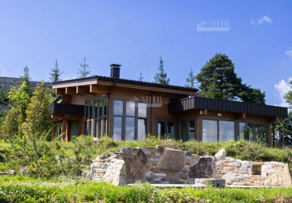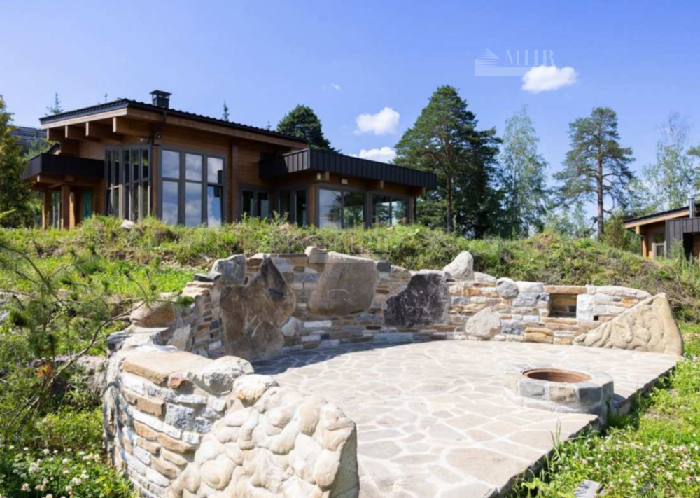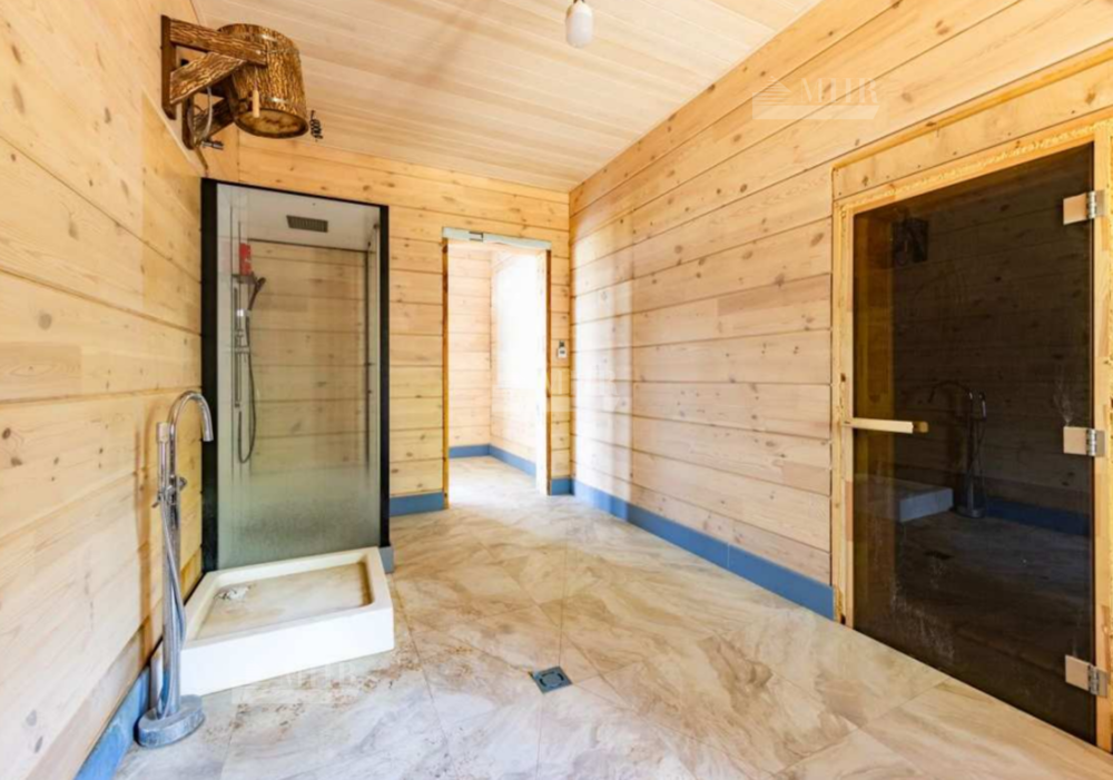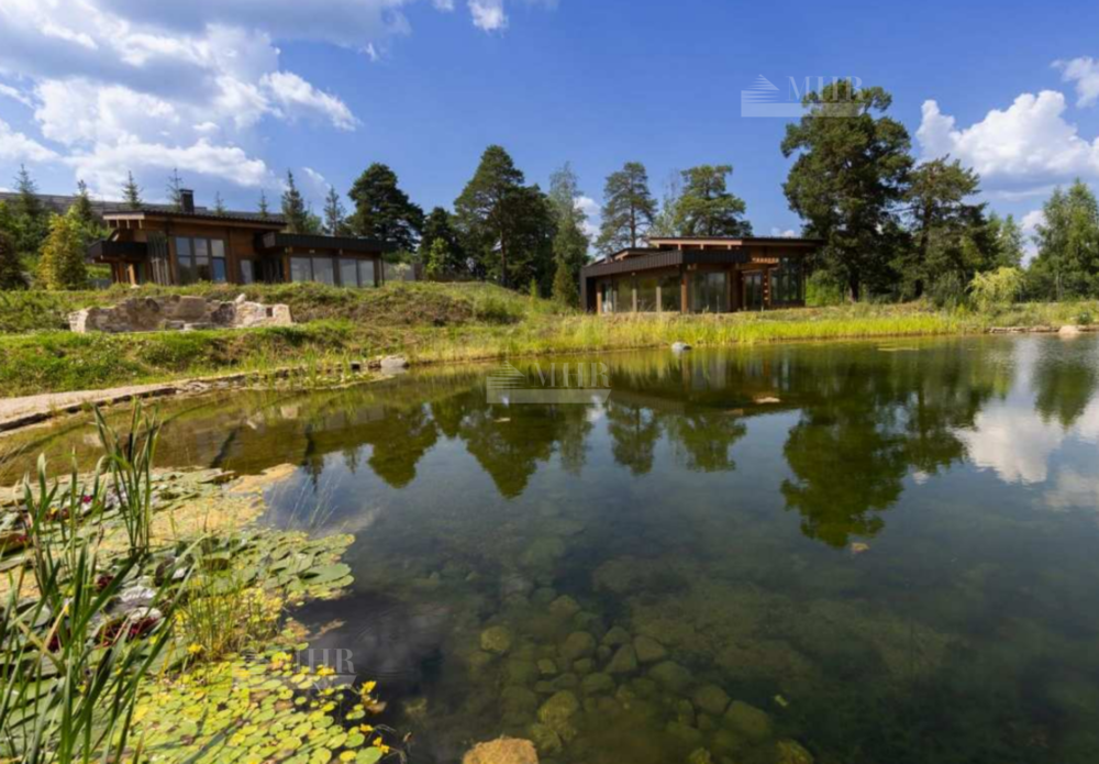 Здесь предлагаются пять готовых к заселению домов- основной дом  площадью 726 кв. м с выходом в  в  СПА зону с бассейном, дом для охраны с гаражом, два гостевых  дома  для отдыха с отдельной котельной и собственным подъездом , а также трапезная с террасой и зоной барбекю с выходом в собственный пруд, в котором можно купаться.
