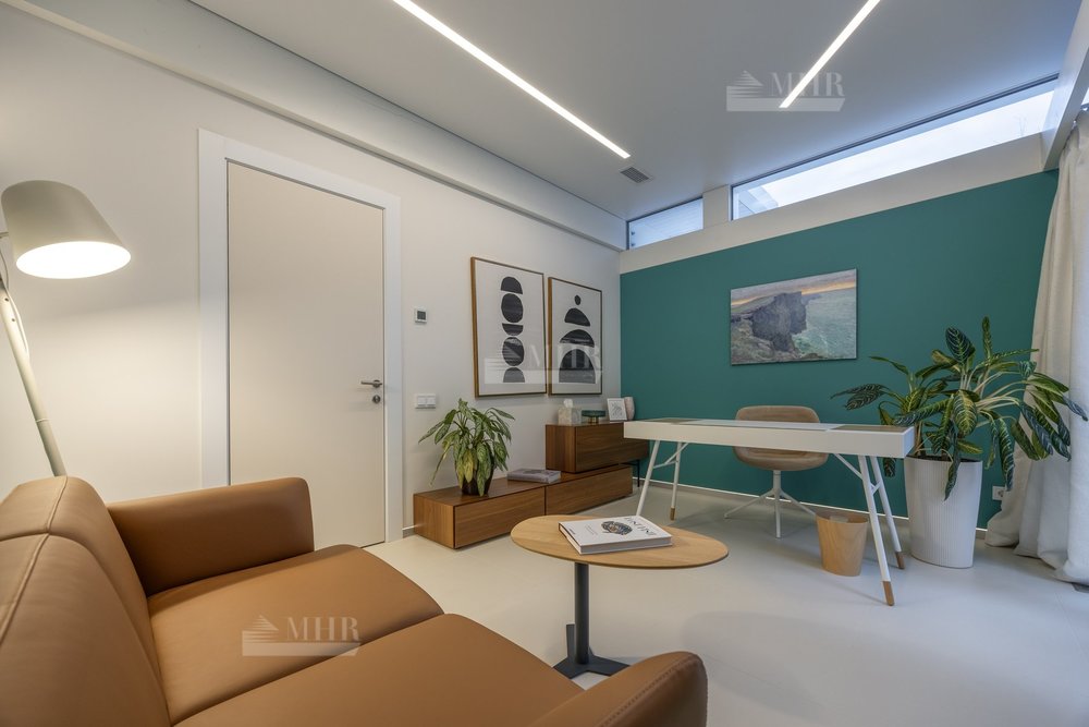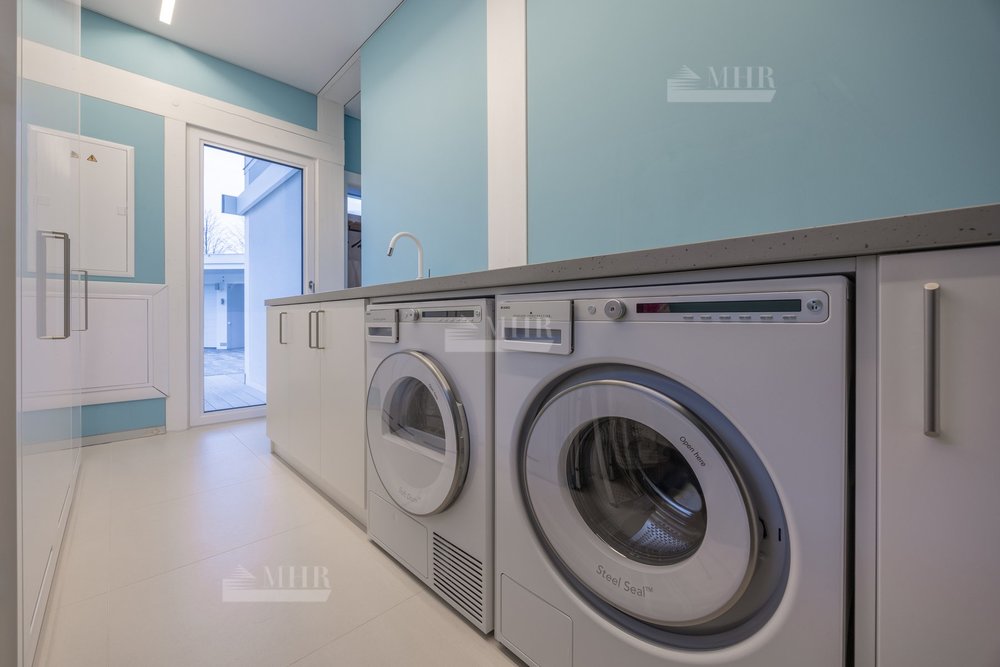 1-й этаж: кабинет/гостевая, спальня, гардероб, постирочная, гостиная, кухня-столовая, просторная терраса;