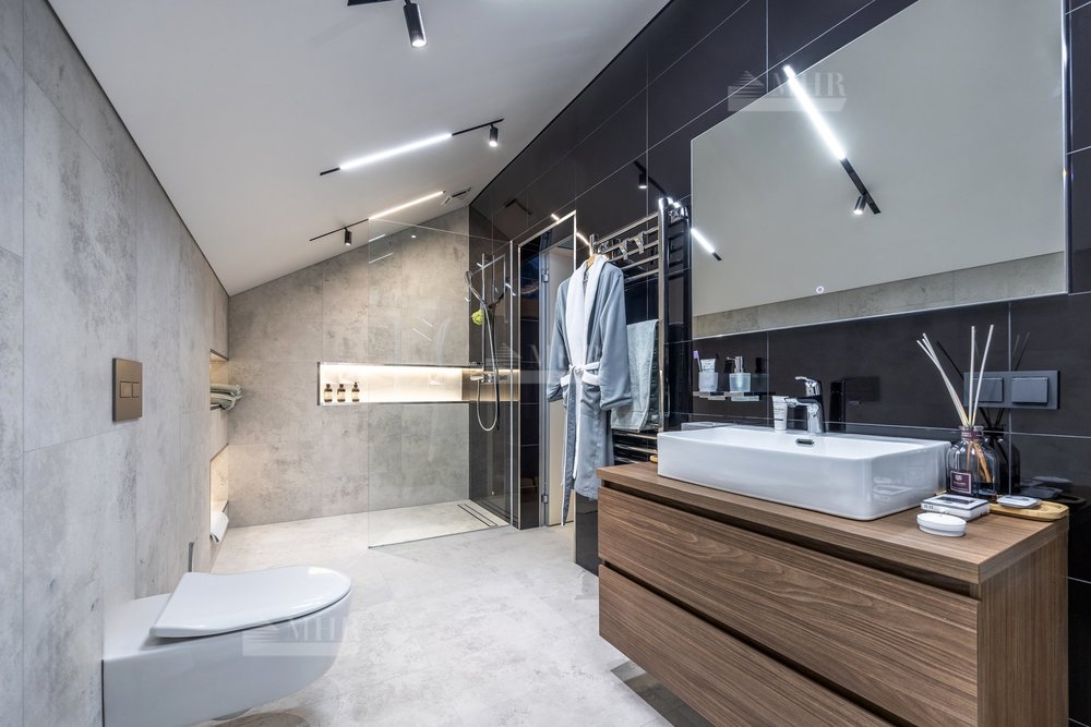 2-й этаж: мастер-блок с гардеробом, балконом и ванной комнатой, 2 детские спальни с общей ванной комнатой.