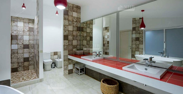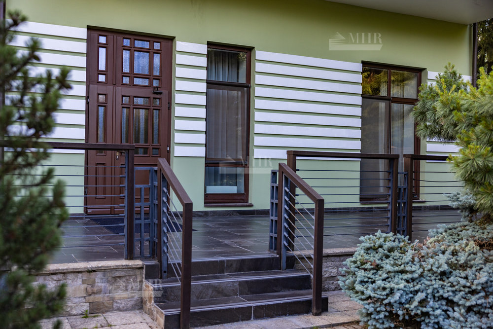 1-й этаж: прихожая, санузел, гардеробная, лифт, большой парадный холл с выходом на террасу, гостиная, кабинет, кухня-столовая с большой летней террасой, кладовая, санузел, зона SPA- бассейн, сауна, русская баня с купелью и выходом на террасу, с/у, душевая, 2 гостевые спальни с с/у, кухня, холл с гардеробной;
