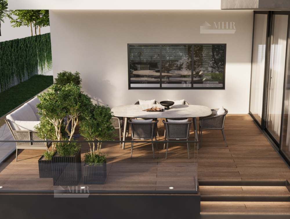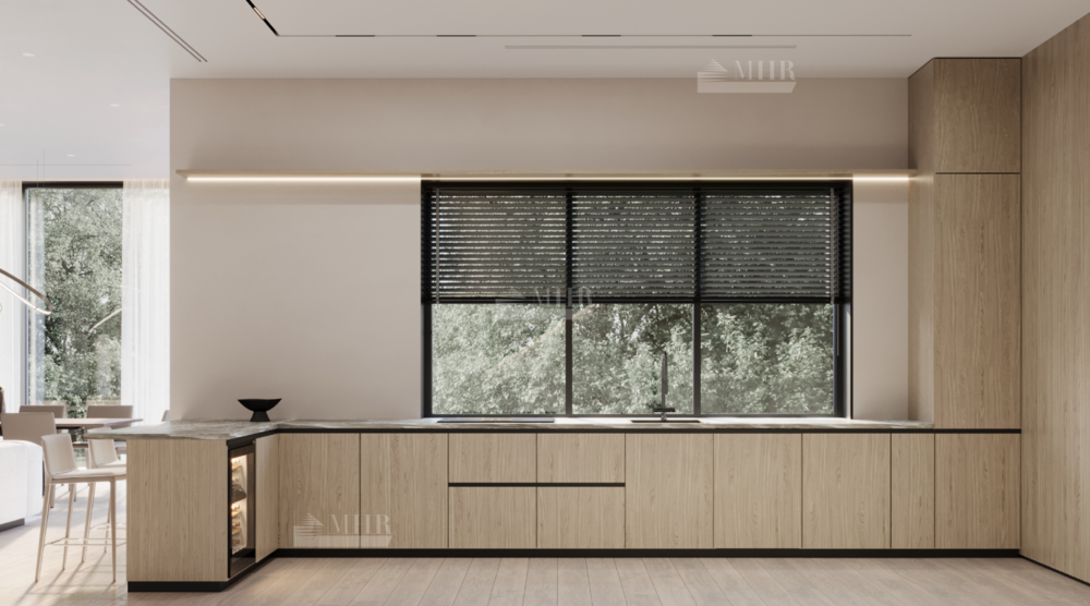 1й этаж: кухня-гостиная с выходом на террасу, гостевая спальня, прачечная, кладовая, гараж на 2 автомобиля;