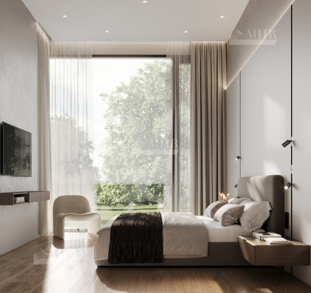 2й этаж: две мастер-спальни с гардеробными и санузлами, а также спальня хозяев дома с большим гардеробом, кабинетом и санузлом.