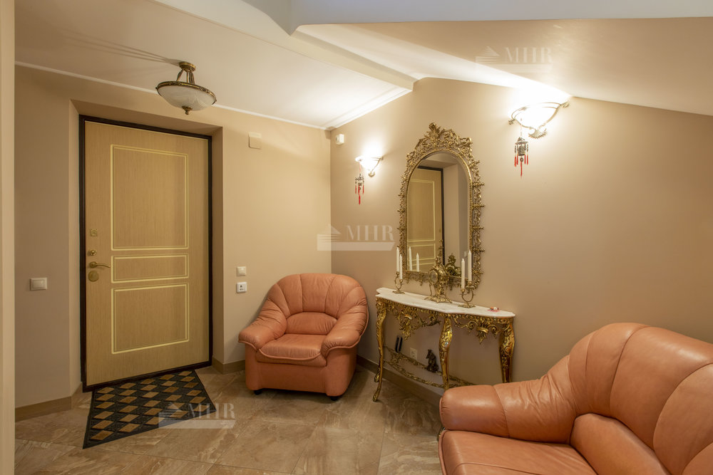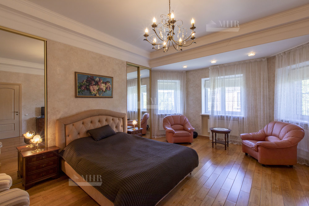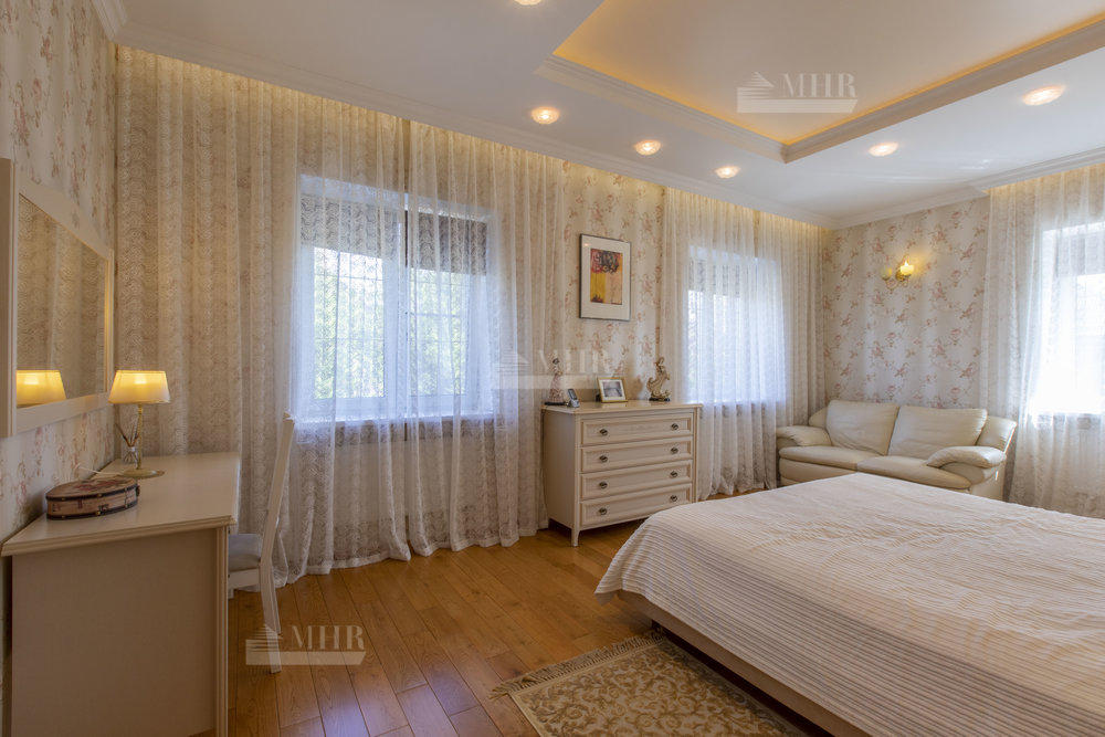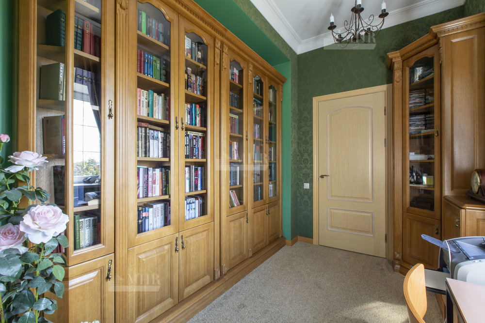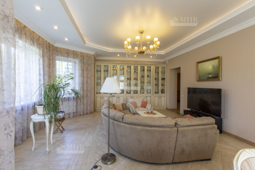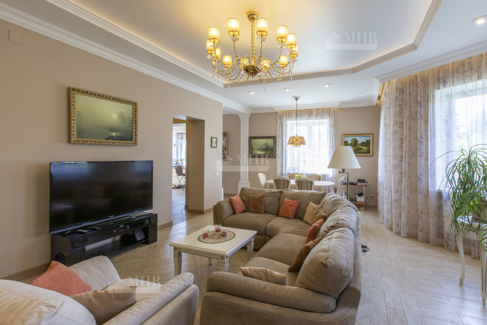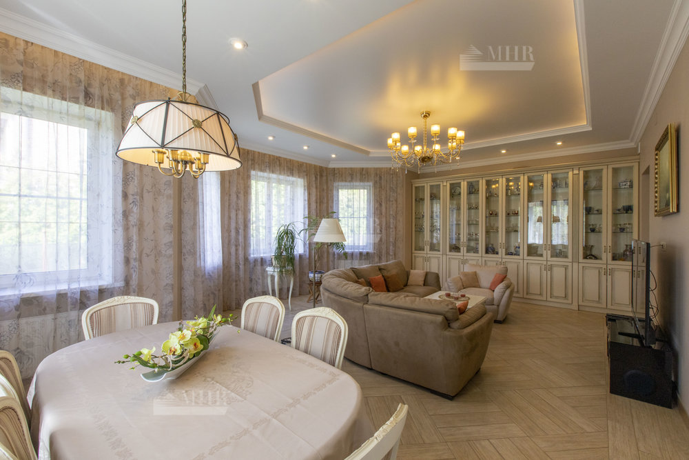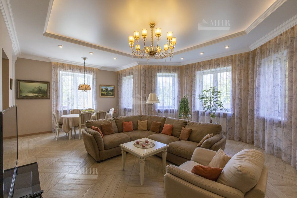 В интерьере использованы натуральные материалы. Двери изготовлены из массива дерева, полы сочетание инженерной доски и плитки, массивная доска. Кондиционирование в каждой комнате. Дом разбит на жилые, досуговые и общие зоны.