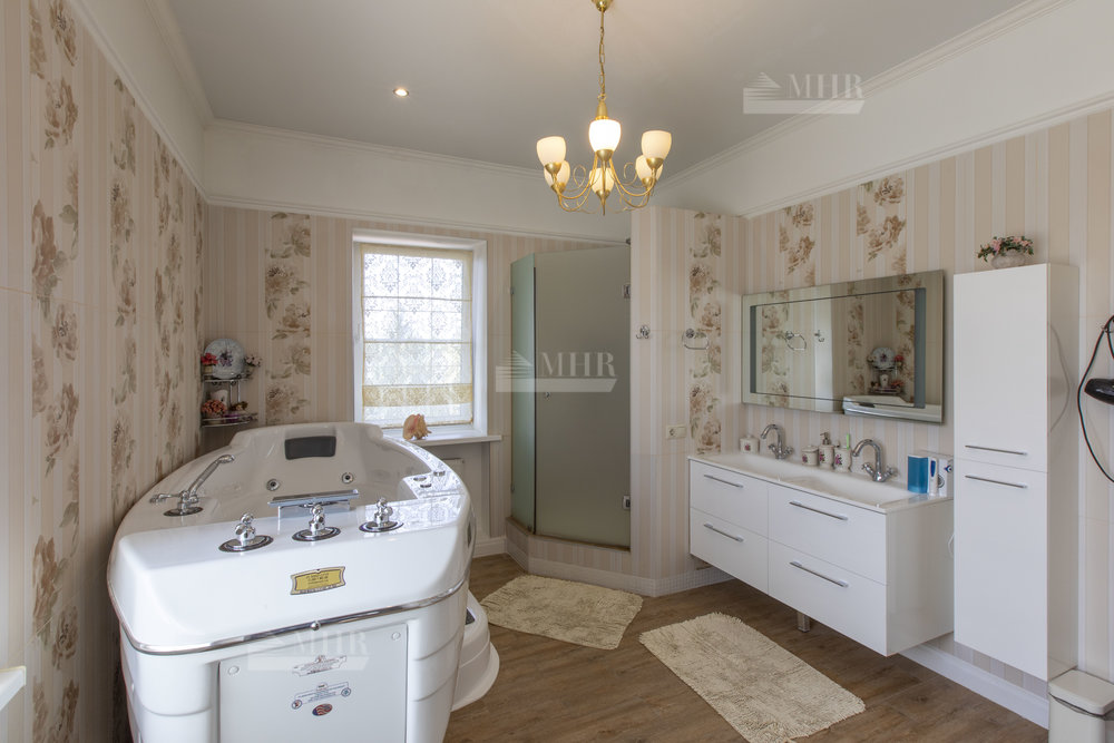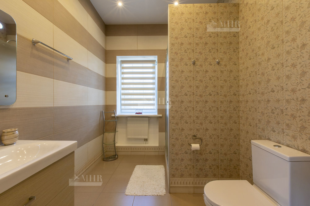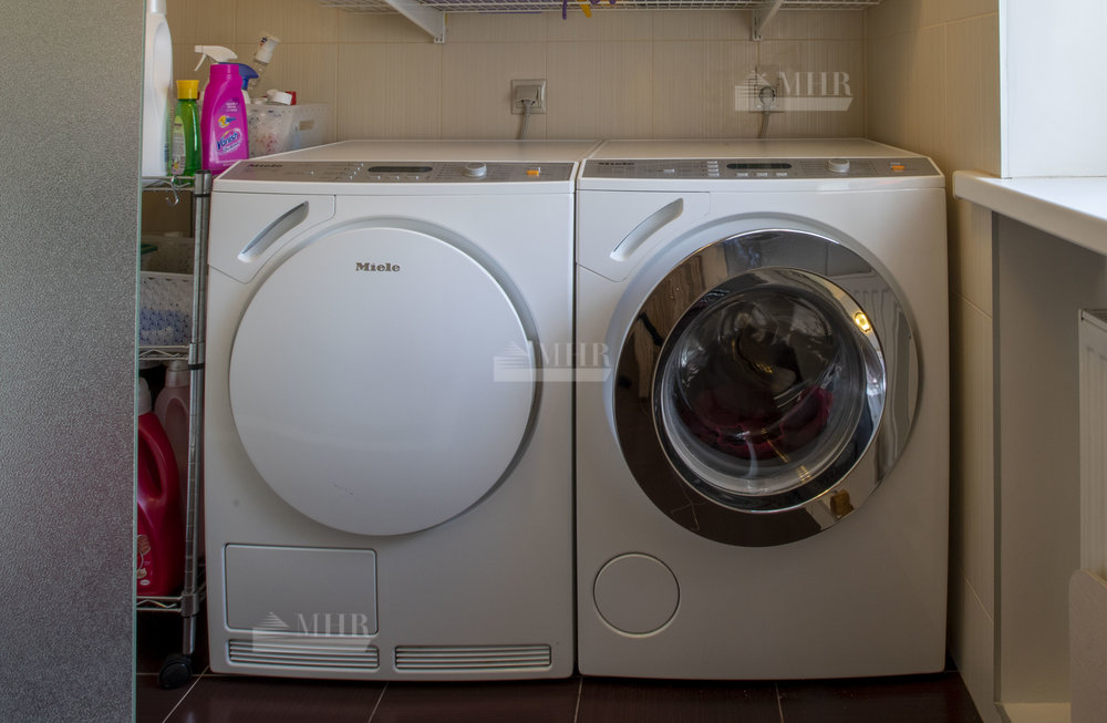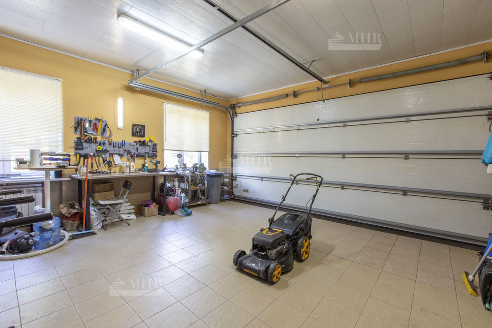 Гараж на 2 машиноместа, мастерская, постирочная со стиральной и сушильной машинами, санузел, бойлерная (оборудована двумя котлами Buderus, бойлер 200 литров, контур подогрева полов, водоподготовка.