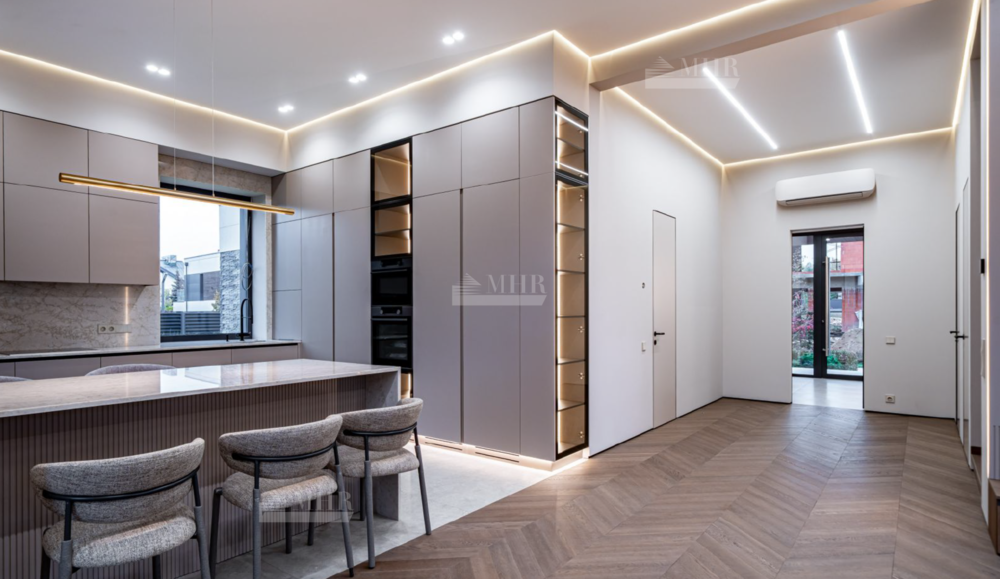 В доме эргономичные планировки, высокие потолки(4 метра), зонирование выполнено таким образом, что вся площадь дома функционально задействована.