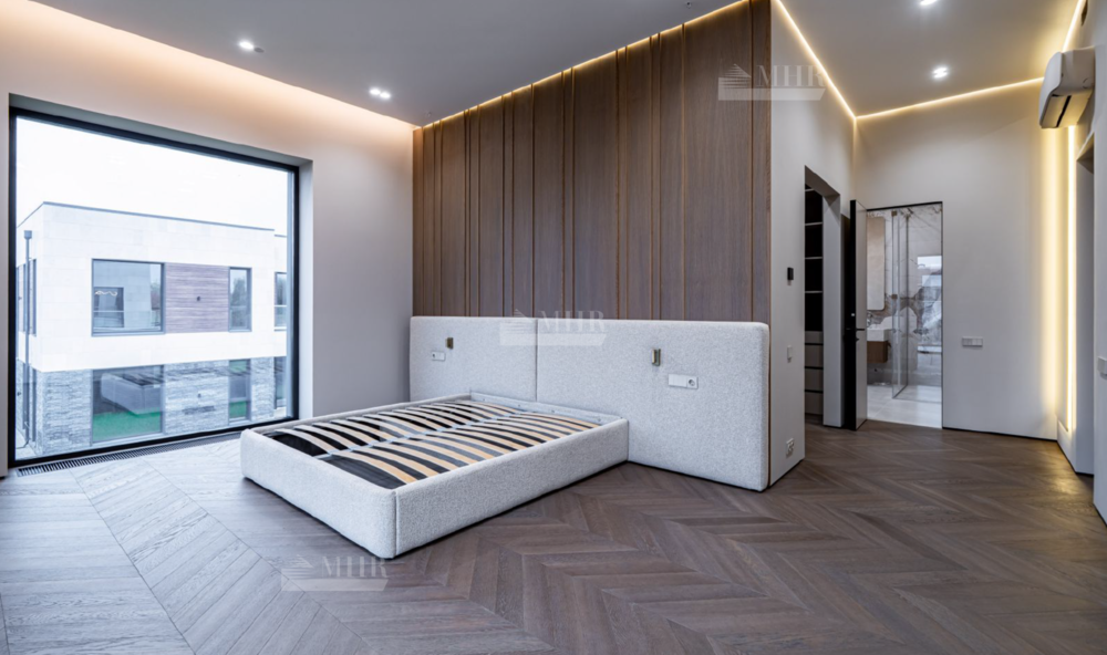 2-й этаж: холл, мастер-блок с просторной гардеробной и с/у, кабинет, две спальни, с/у с ванной.