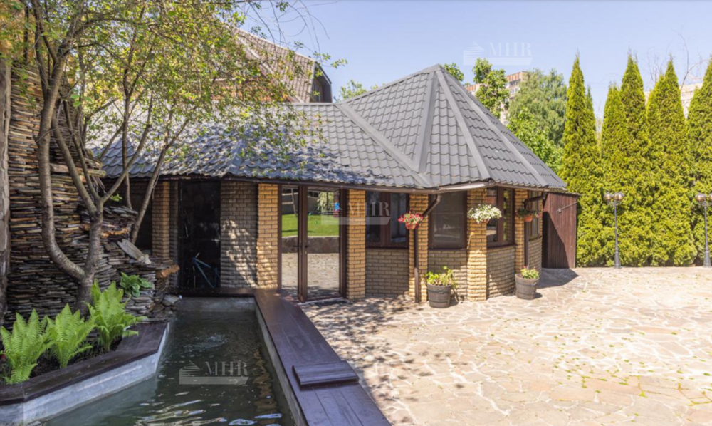 На участке пруд с рыбками, плодовые деревья, кустарники. Летняя беседка с мангалом. Отдельным строением гараж на 2 машины с небольшой квартирой для персонала.