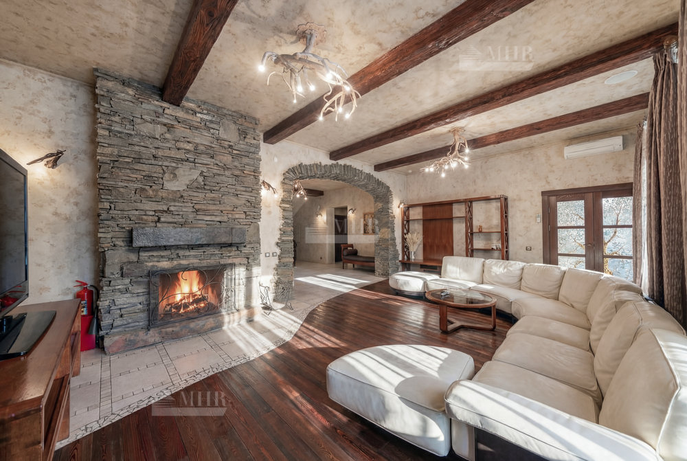 1-этаж: прихожая, гардеробная, кухня-столовая с выходом на террасу, гостиная с камином, спальня, бассейн, сауна, душевая;