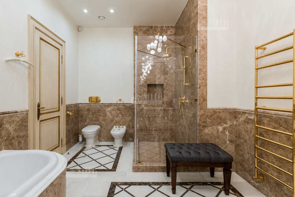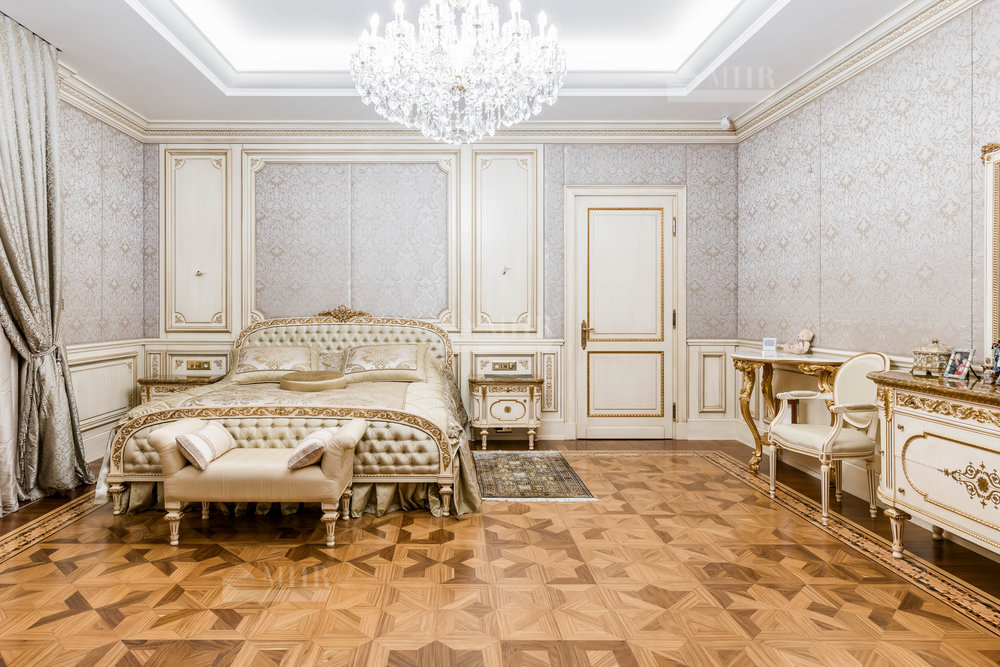 2 этаж: мастер-спальня с двумя санузлами и гардеробными, две спальни с гардеробными и санузлами;