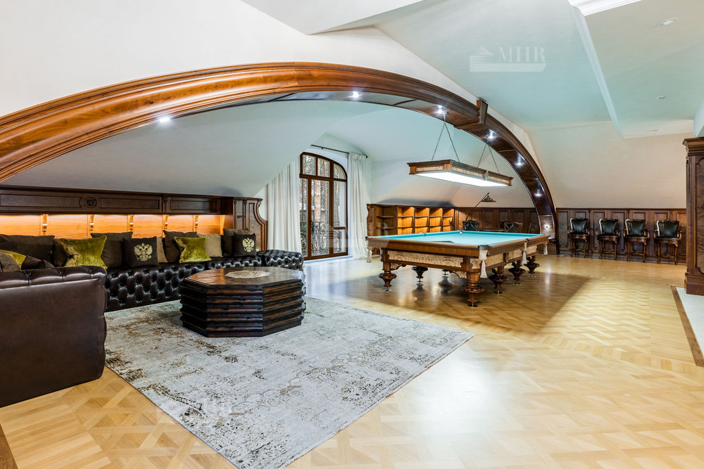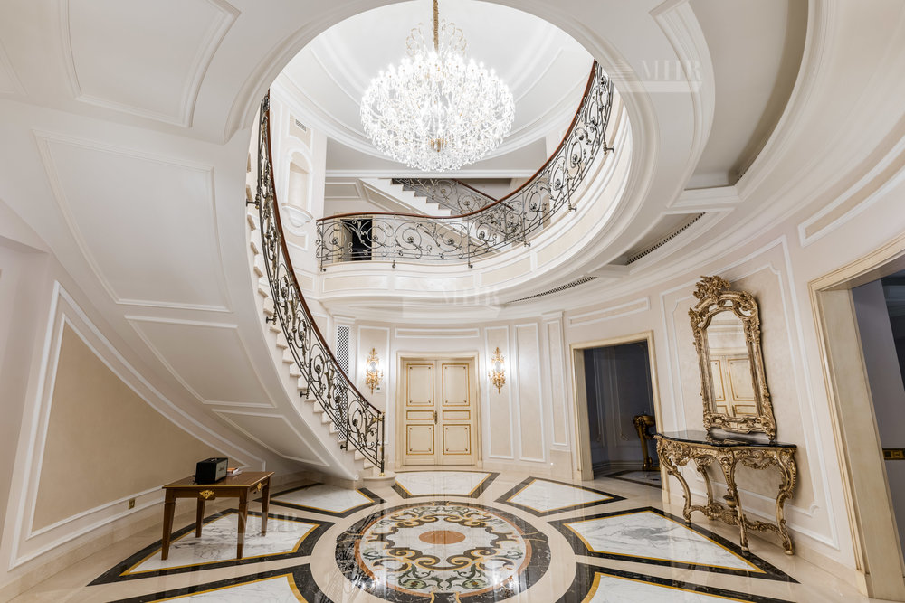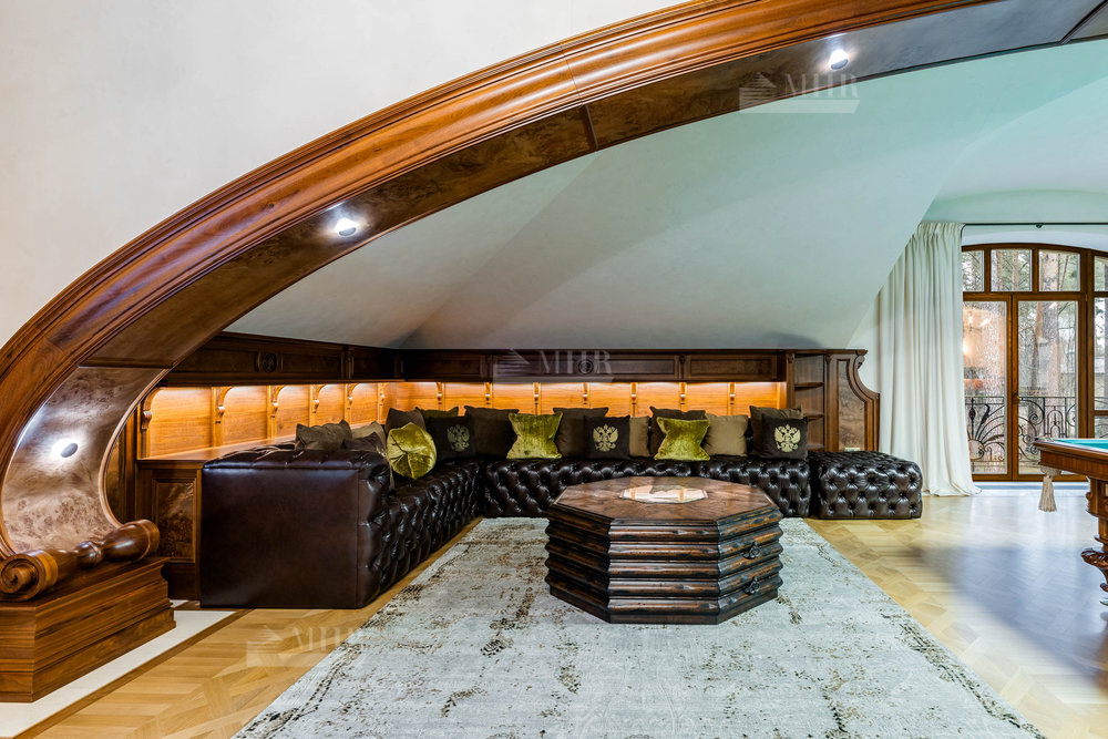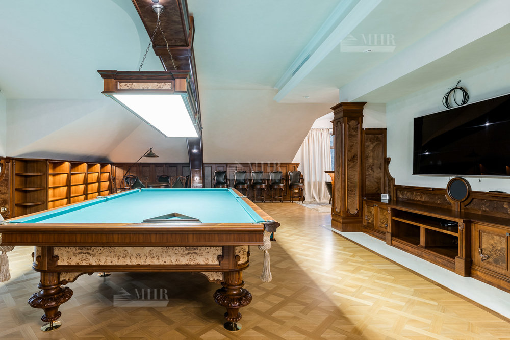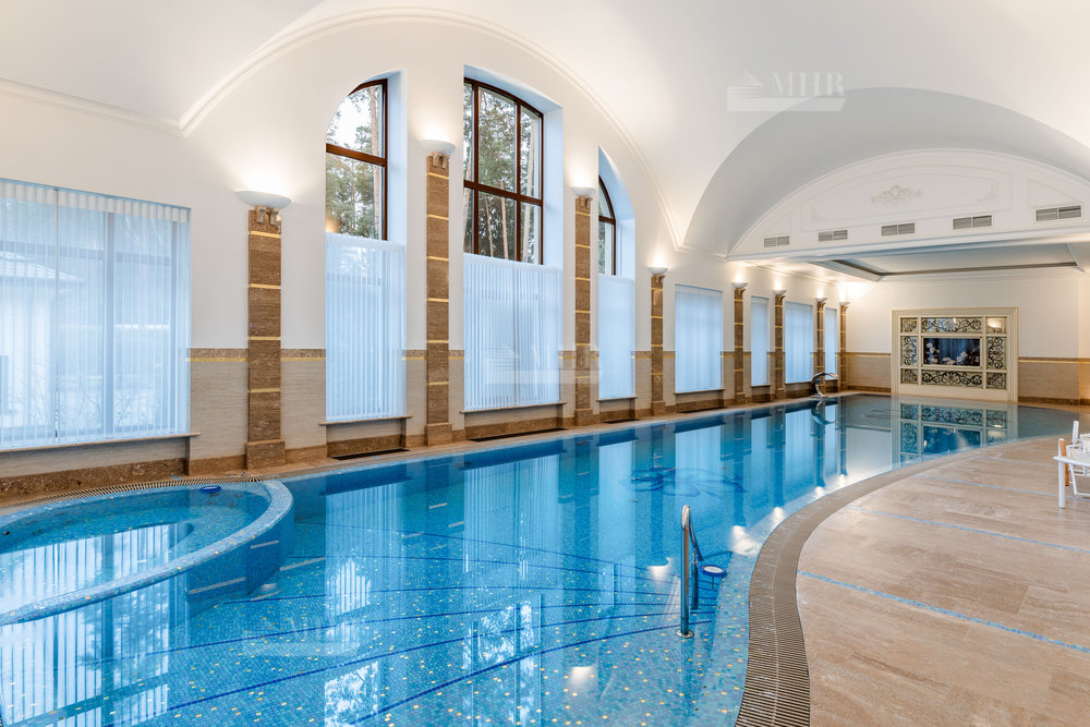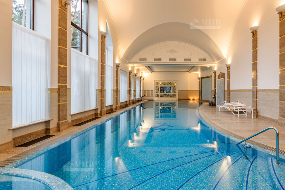 Резиденция с тщательно продуманной планировкой, зоной SPA, бассейном длиной 22–25 м, лифтом и просторными жилыми помещениями. Дом полностью готов к проживанию, оснащён современными инженерными системами и выполнен из высококачественных материалов. На участке также расположен дом охраны (380 м²) и гараж на 6 автомобилей.