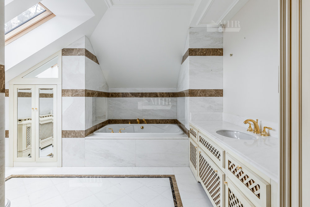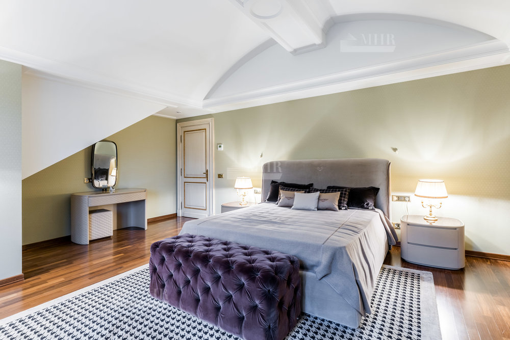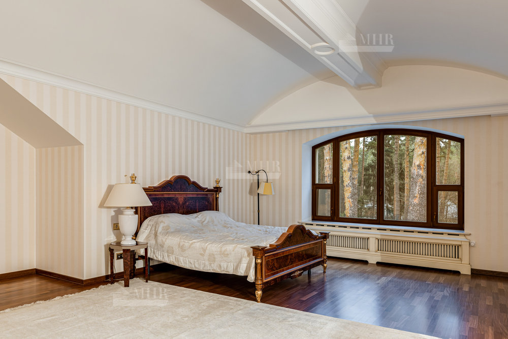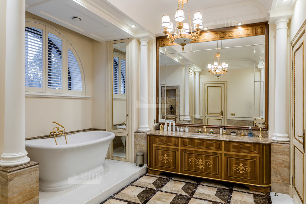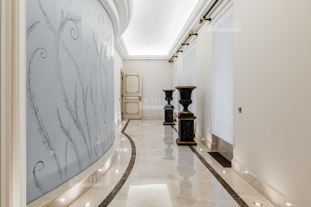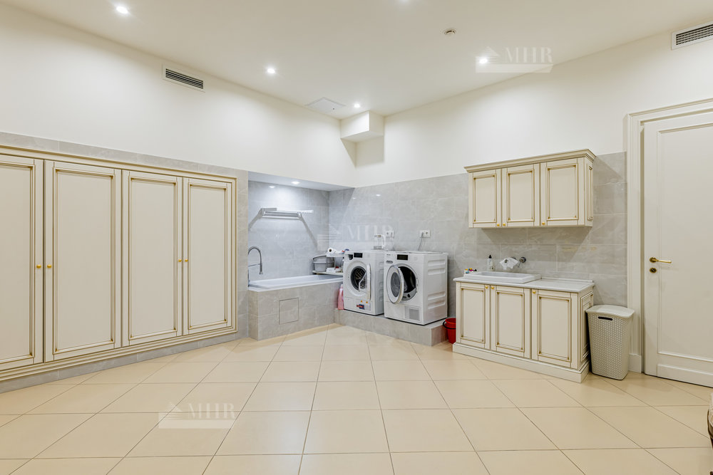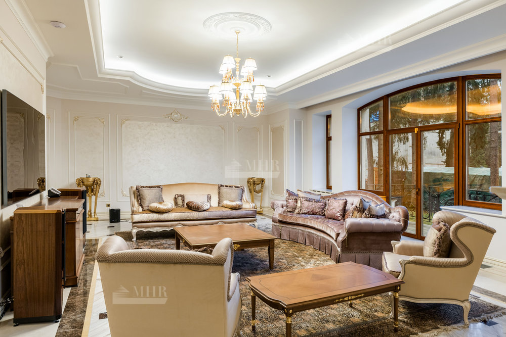 Резиденция с тщательно продуманной планировкой, зоной SPA, бассейном длиной 22–25 м, лифтом и просторными жилыми помещениями. Дом полностью готов к проживанию, оснащён современными инженерными системами и выполнен из высококачественных материалов. На участке также расположен дом охраны (380 м²) и гараж на 6 автомобилей.