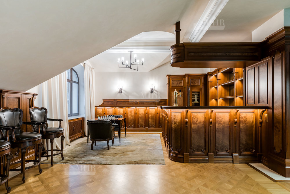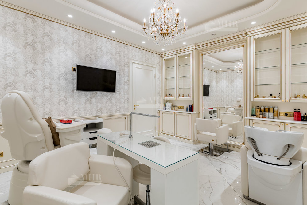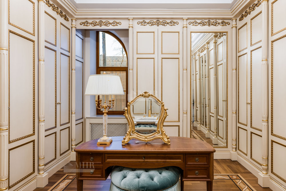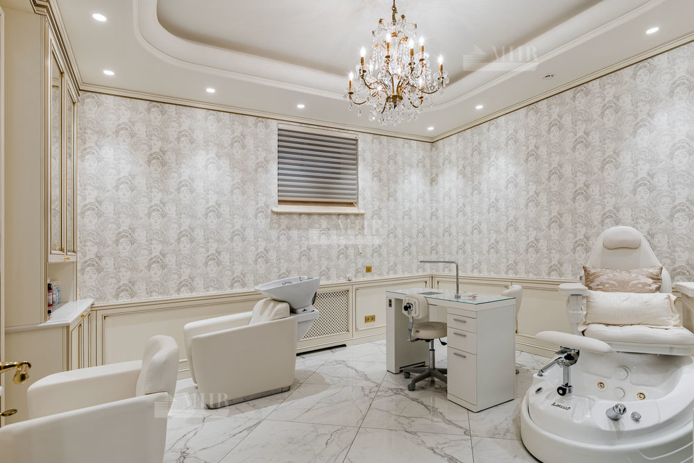 1 этаж: холл, кабинет, гардеробная, гостиная с камином, малая гостиная, столовая, кухня, санузел, гостевая спальня с санузлом, спа-зона с бассейном, сауна, хаммам, комната отдыха с мини-кухней;