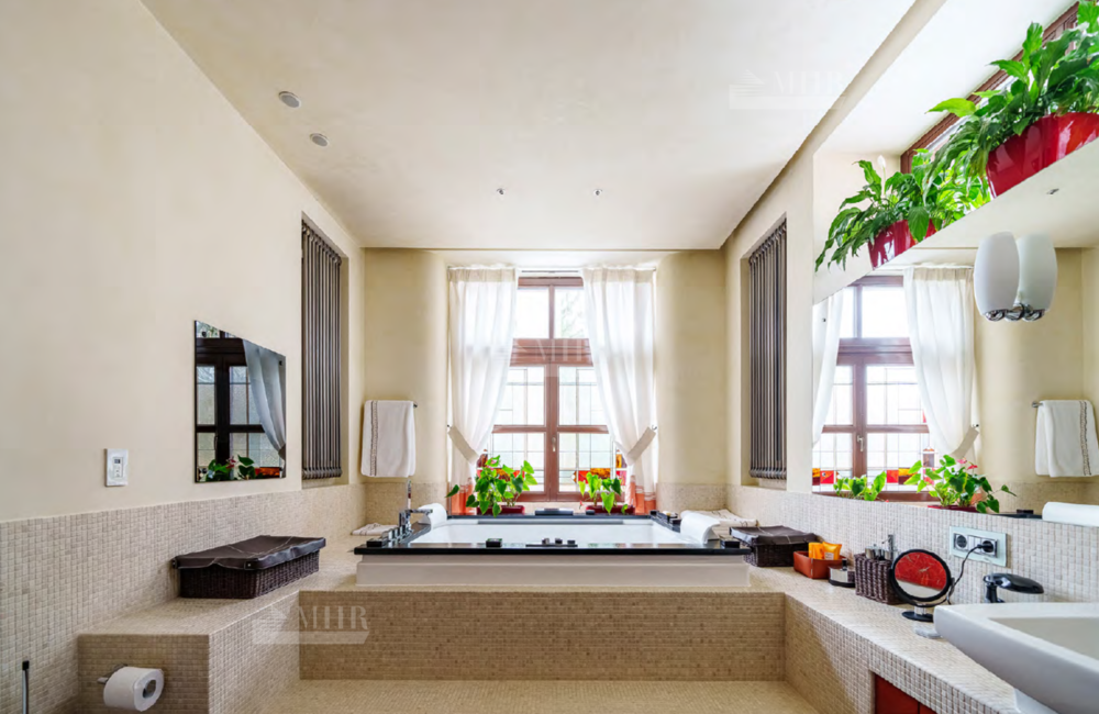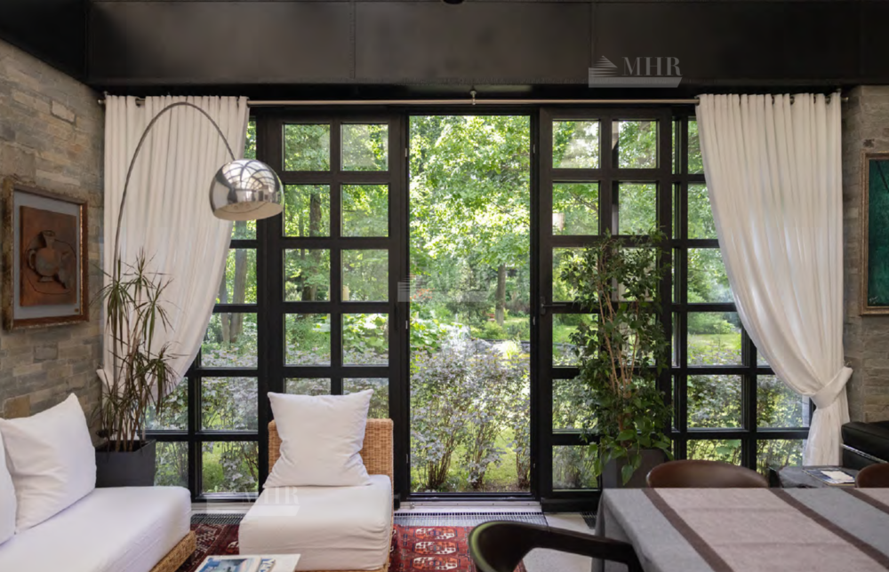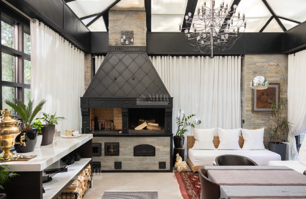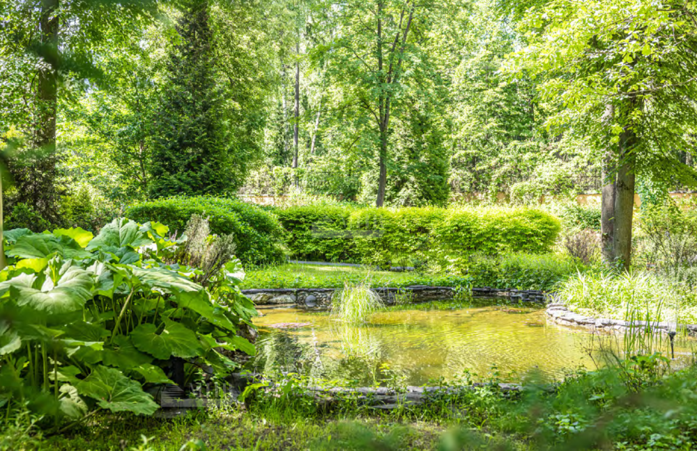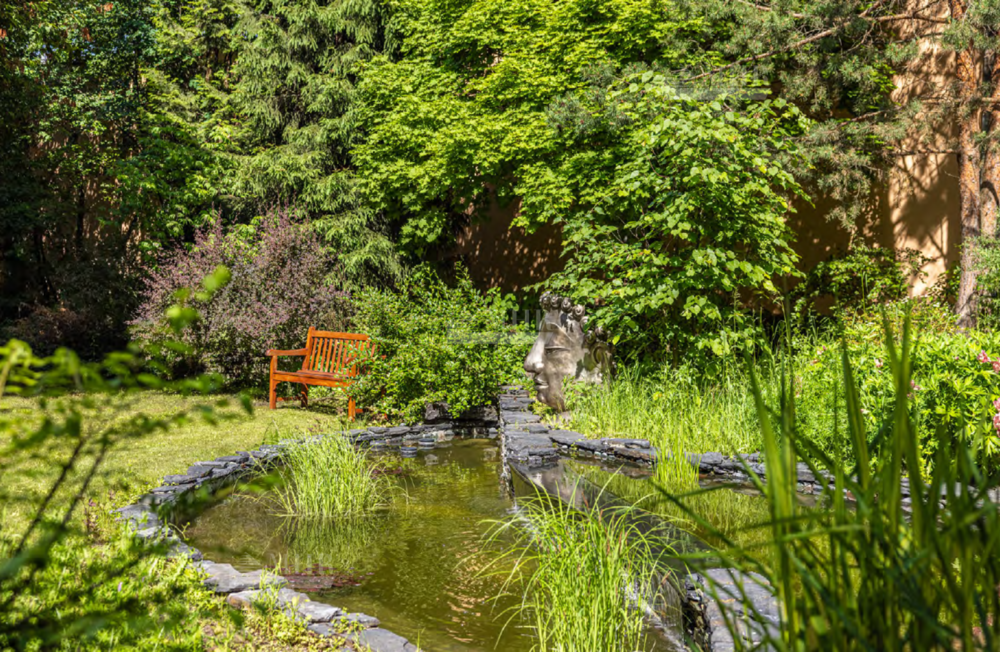 Приватный лесной участок с ландшафтным дизайном, каскад прудов с рыбками, ручей, прогулочные дорожки и уличное освещение. Основной дом расположен на достаточном расстоянии от других строений на участке, что даст владельцу чувство уединения и спокойствия.