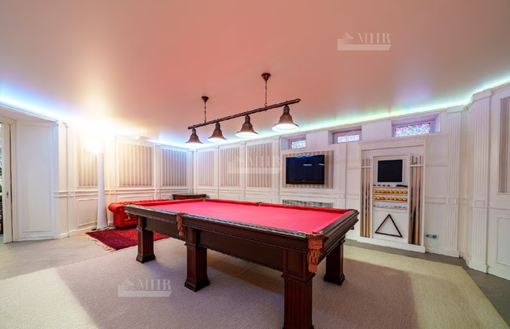 Цоколь: спортзал, домашний кинотеатр, бильярдная, бар, винный погреб и лифт для продуктов, постирочная, с/у, котельная.