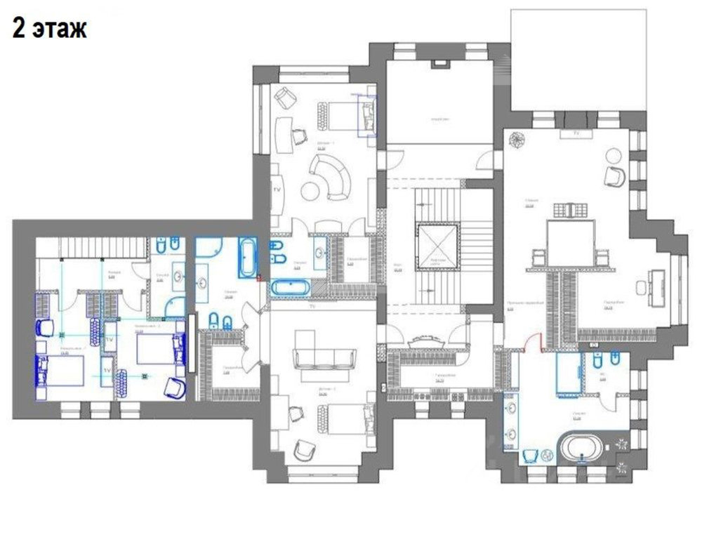 Мансарда: 2 спальни с одним с/у и ванной комнатой, 2 детские игровые, тех.помещение.