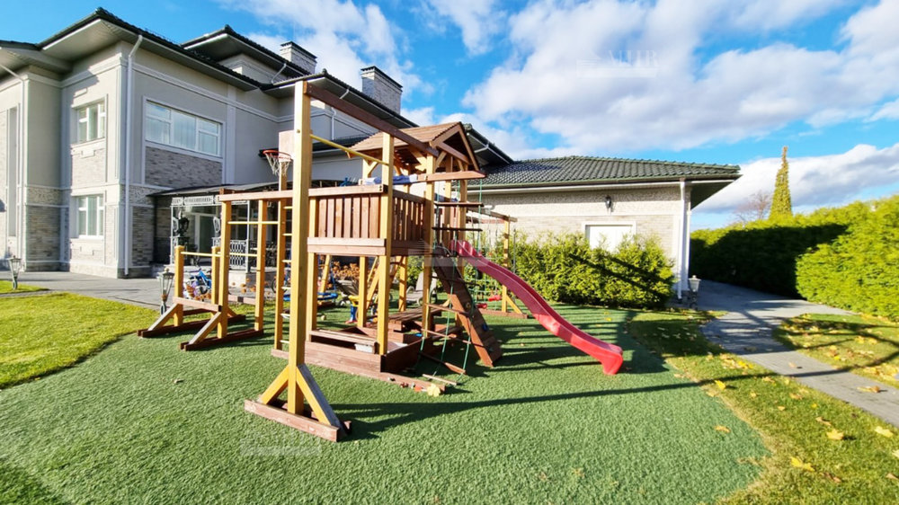 На территории участка установлена детская игровая площадка, а также построен гостевой дом с баней на 150 кв.м. Охранная система с видеонаблюдением и датчиками движения.  Все коммуникации центральные.