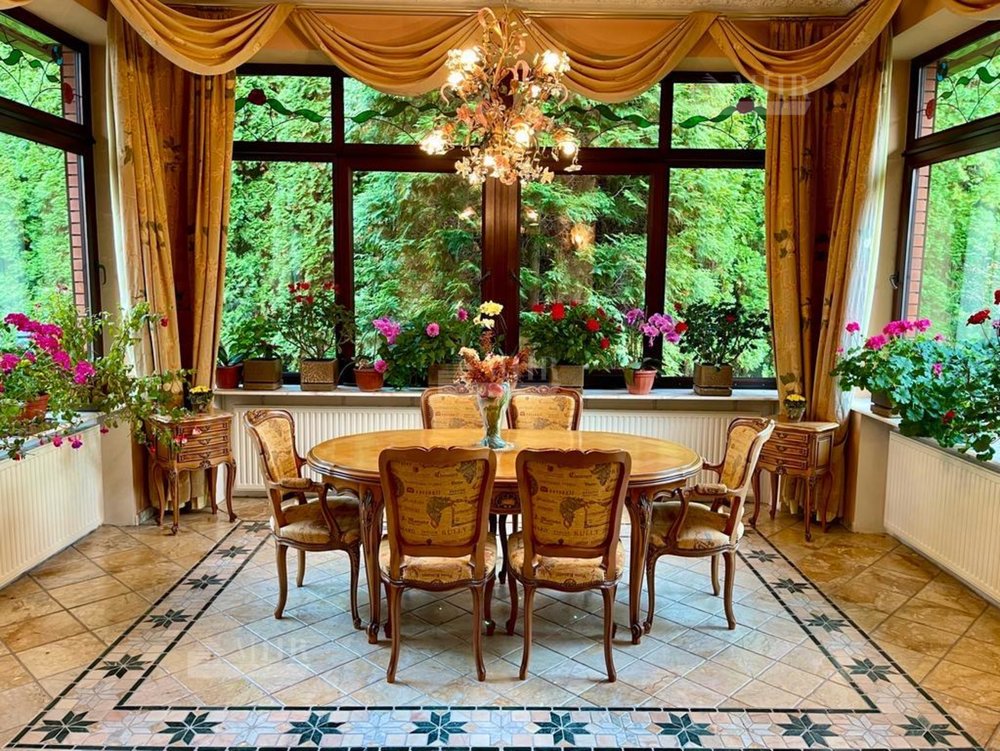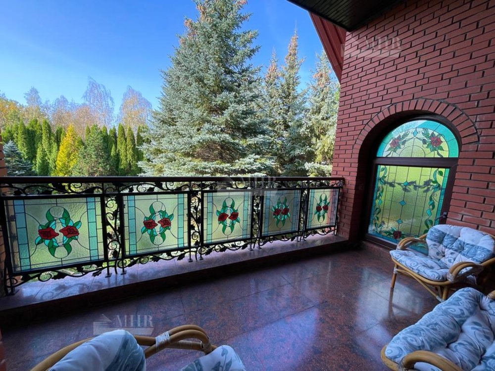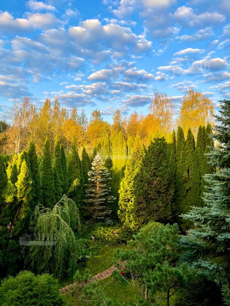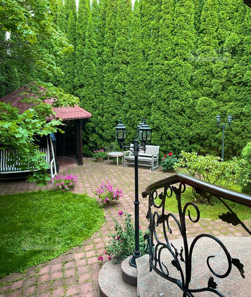 Великолепный вид из всех окон и террас дома на зелень, в сад. Соседних домов не видно. Приватно и тихо. На участке выполнен ландшафтный дизайн, установлены системы капельного и автополива, уличное освещение, проложены дорожки, выложенные плиткой, сделана грамотная дренажная система на всем участке. На территории обустроена беседка и зона барбекю площадью 100 кв.м., в беседке имеются электрические розетки, проведена вода. Имеется большой набор мебели для сада и барбекю из тика английской фирмы Глостэр (Gloster) на 10-12 человек. По периметру участка высажены 300 туй Смарагд, на территории участка растут сирень, жасмин, пионы, рододендрон, хосты, лилейники, спирея, бонзайская сосна, можжевельники, клены, дуб, рябина, ели. Дом полностью готов к проживанию.