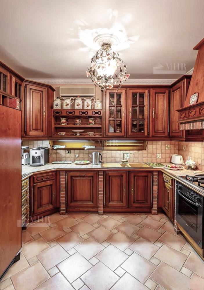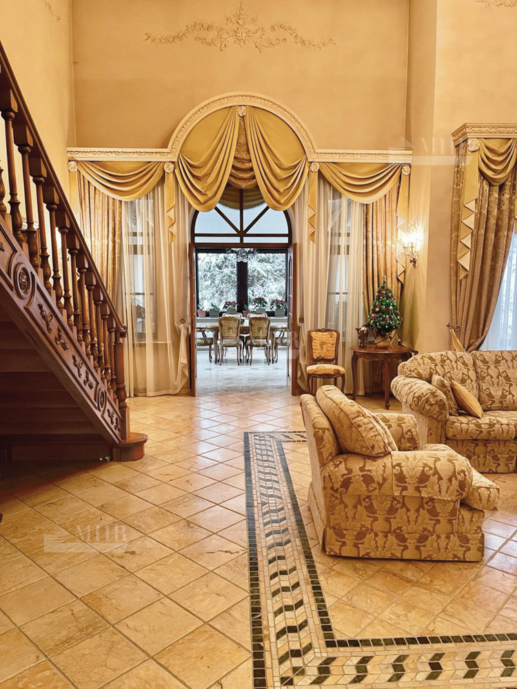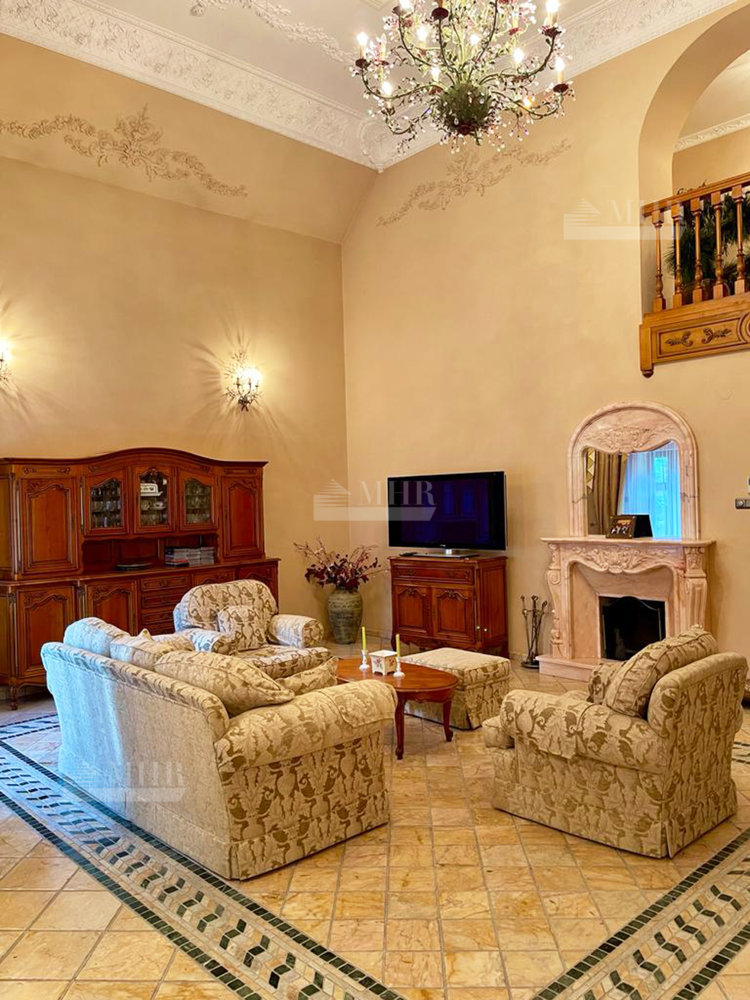 Дизайнерский проект, уникальные отделка и мебель. Стиль французская классика. Мебель, двери, лестница, кухня и даже плинтусы специальный заказ из Франции из массива вишни. Сантехника Devon &Devon. Электрика АББ. Кондиционеры Дaikin, во всех помещениях отдельная система климат-контроля. Люстры, светильники из мурановского стекла и хрусталя ручной работы Mechini Sergio Италия. Из мрамора: полы, подоконники, камин, сан/узел основной спальни, мрамор Giottoli Di Marmo заказ из Италии. Мягкая мебель Великобритания. Имеются электрические рольставни на всех окнах.