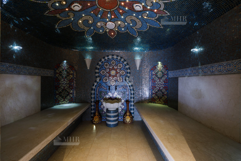 Цоколь: большой бассейн, зона отдыха для гостей и хозяев, SPA-зона: хаммам, сауна, душевая.