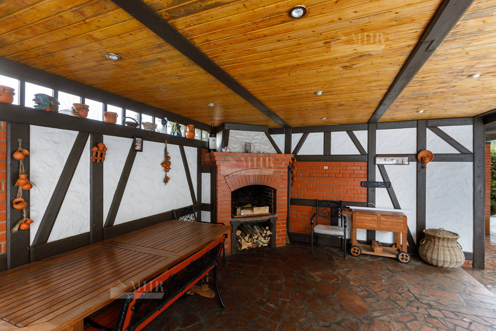 1-й этаж: холл, просторная гостиная с камином и выходом на веранду, отдельно большая кухня с обеденной зоной, зона столовой, гостевой с/у, кабинет;