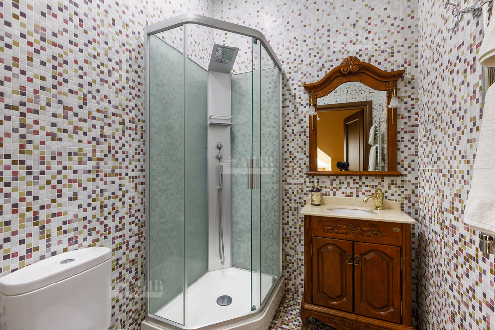2-й этаж: мастер-спальня ( с большим санузлом с джакузи и душевой кабиной и гардеробной) и 2 спальни с общим санузлом с ванной;