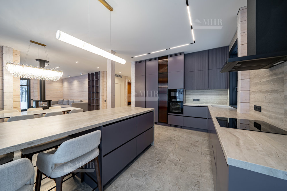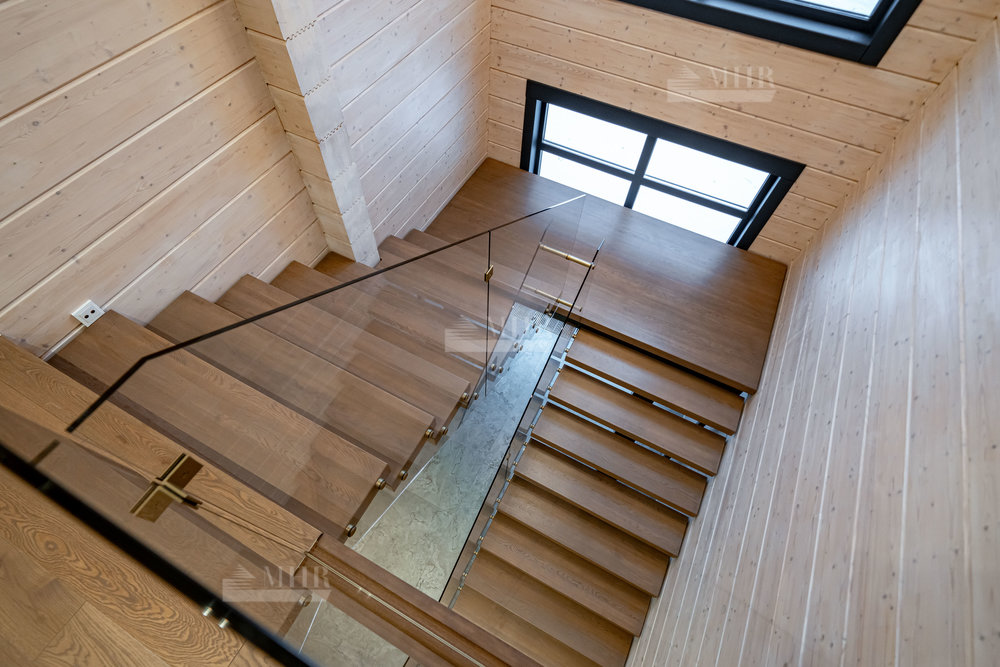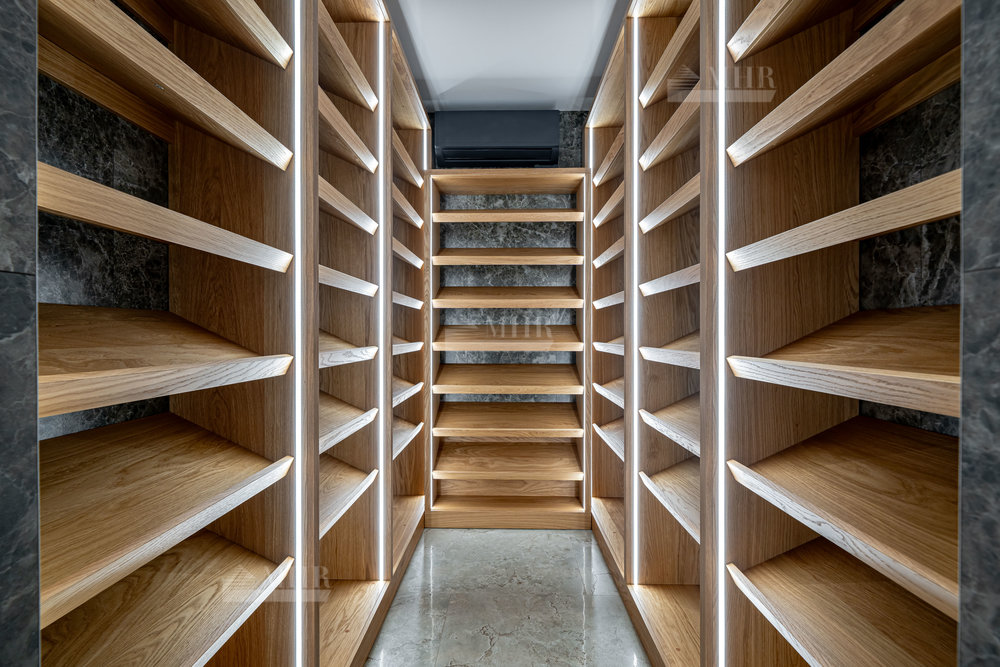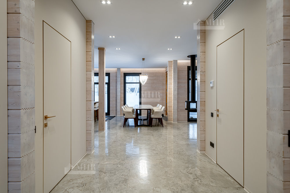 1-й этаж: входная терраса, техническое помещение, прихожая, гардеробная, холл, гостевая спальня, санузел, винная комната, кухня-гостиная-столовая, терраса;