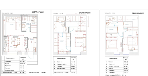 1 этаж: современная кухня-гостиная, идеально подходящая для семейных встреч и приёмов гостей, уютная спальня с собственным санузлом и гардеробной, прихожая, просторная гардеробная, котельная, гараж на 2 машино-места;