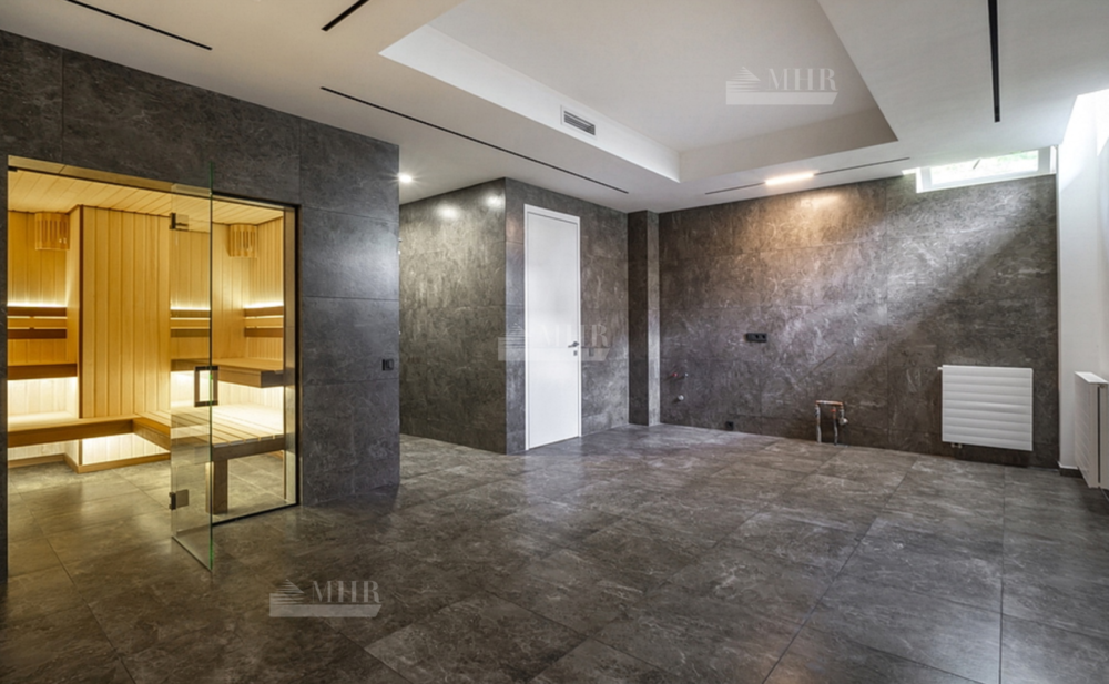- Цокольный этаж: спортзал, санузел, спа-зона (сауна, зона отдыха и релакса, душевая, санузел), постирочная, комната свободного назначения, техническая часть по обслуживанию дома.