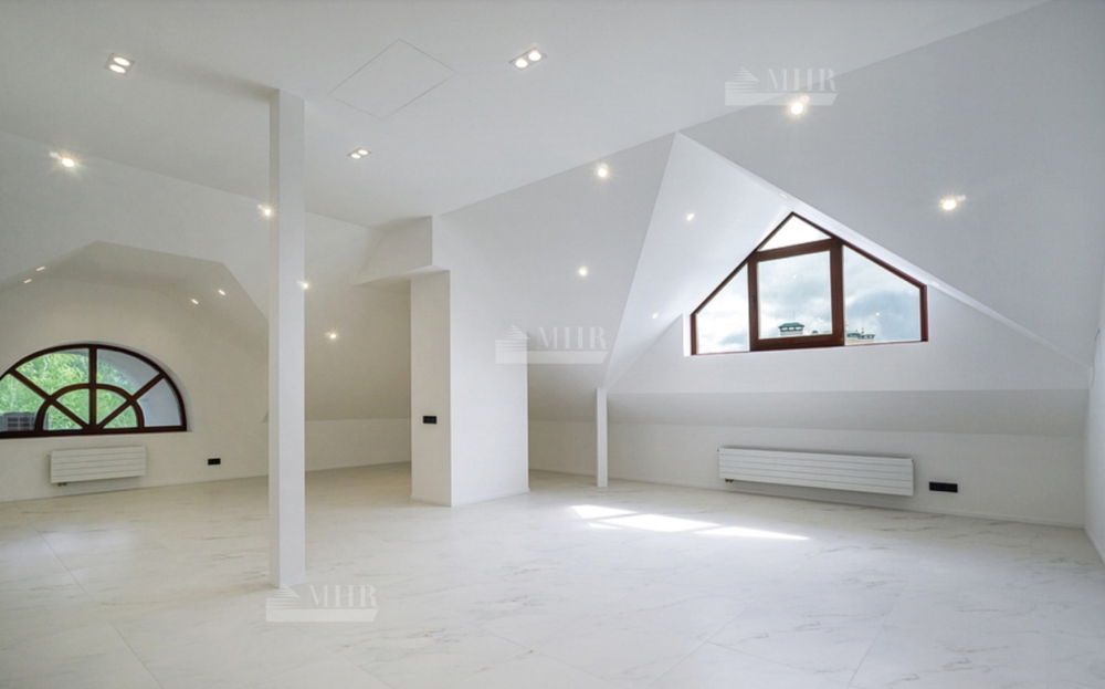 - Мансарда: санузел, спальня, вторая гостиная с зоной отдыха и домашним кинотеатром, комната свободного назначения (можно использовать как игровую, гардеробную, гостевую спальню или кабинет).