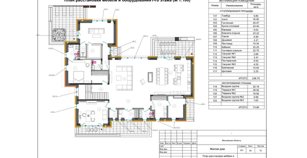 1-й этаж: кухня-столовая-гостиная с выходом на просторную террасу, кабинет/гостевая спальня, санузел, холл;