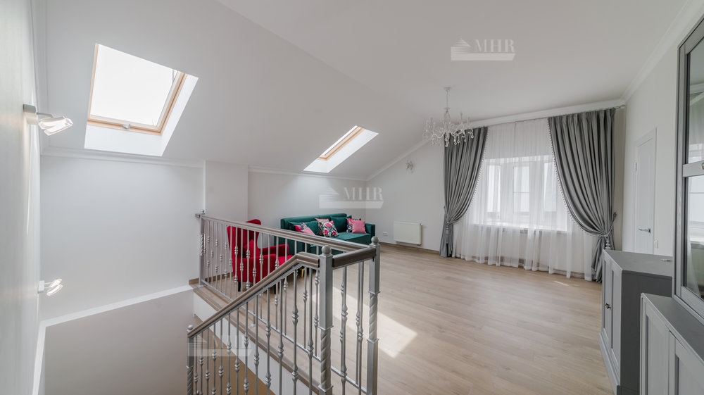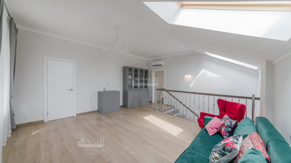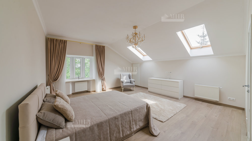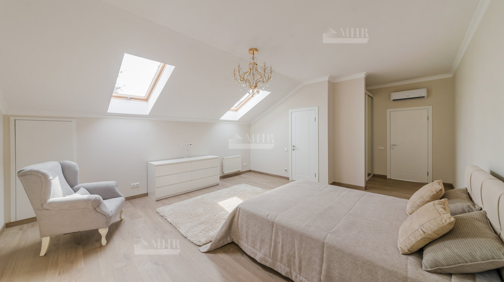 2-й этаж: мастер-блок с с/у и гардеробной, 2 спальни, с/у, отдельный блок в отдельном крыле дома для гостей или персонала со спальней и с/у.