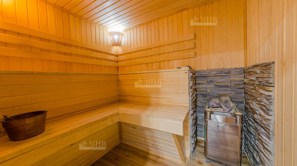 1-й этаж: гостиная, кухня, столовая, спальня с гардеробной, с/у, бассейн, сауна, душевая;