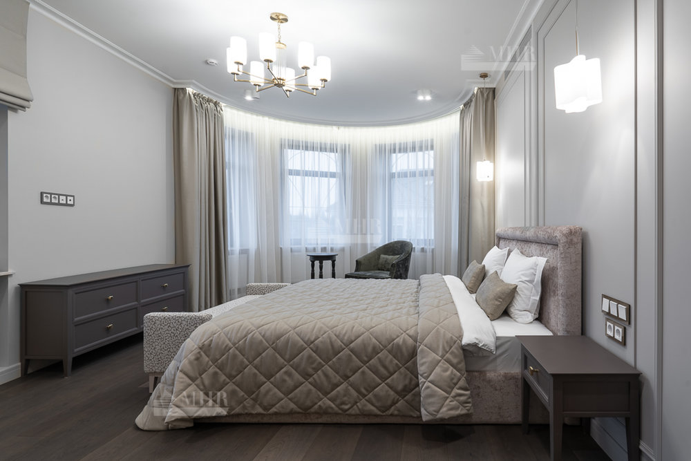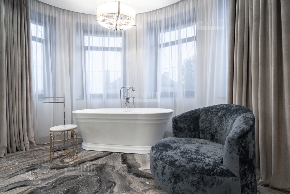 2-й этаж: холл, кабинет, спальня с гардеробной и санузлом-2шт., мастер-спальня с санузлом и гардеробной, гардеробная;