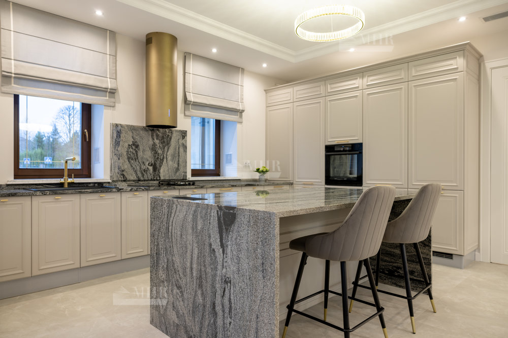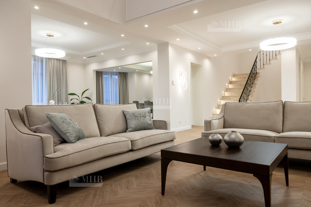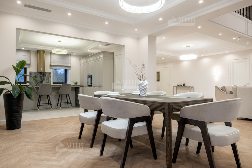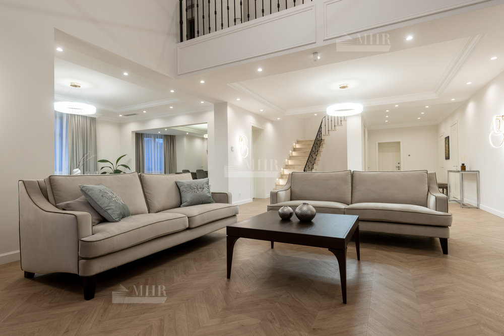Дом имеет стильный интерьер в спокойных оттенках, которые будут по душе новым хозяевам. На участке есть спа- комплекс под отделку.