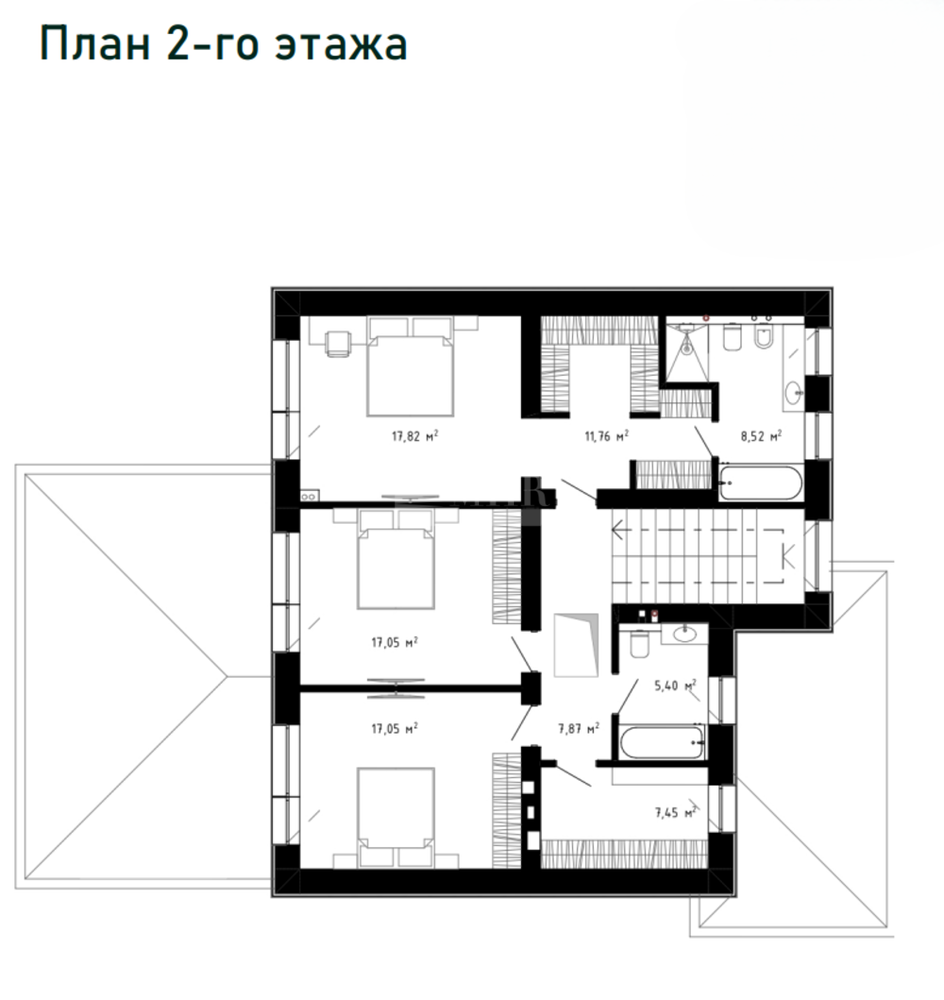 2й этаж: мастер-спальня с с/у, гардеробной и ванной, 2 спальни, с/у с ванной.