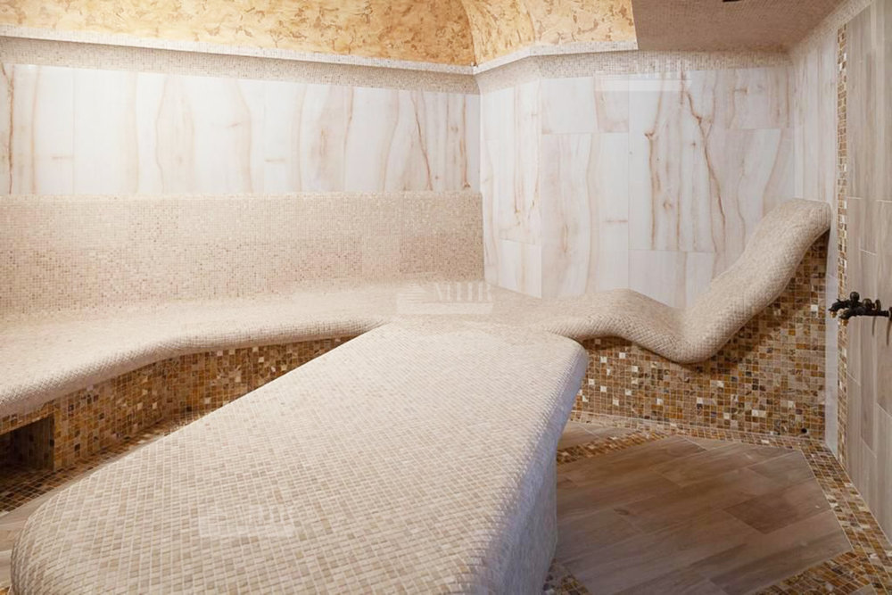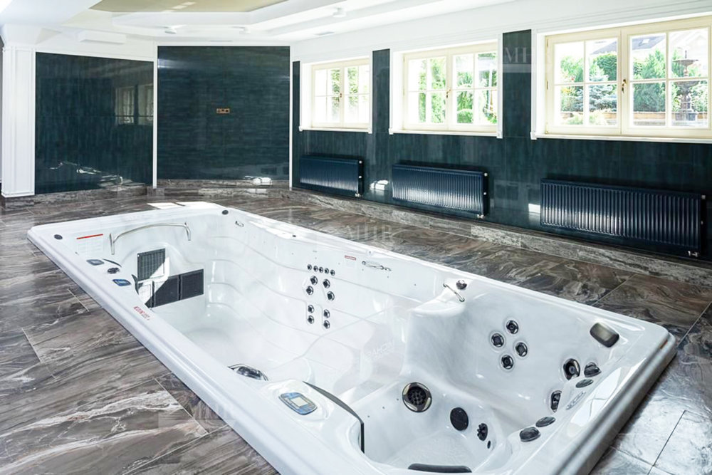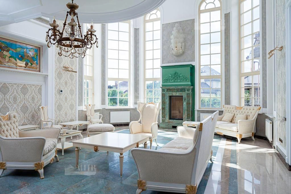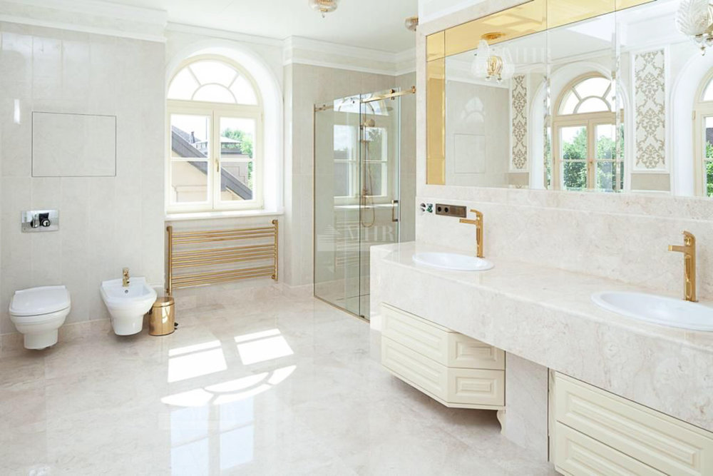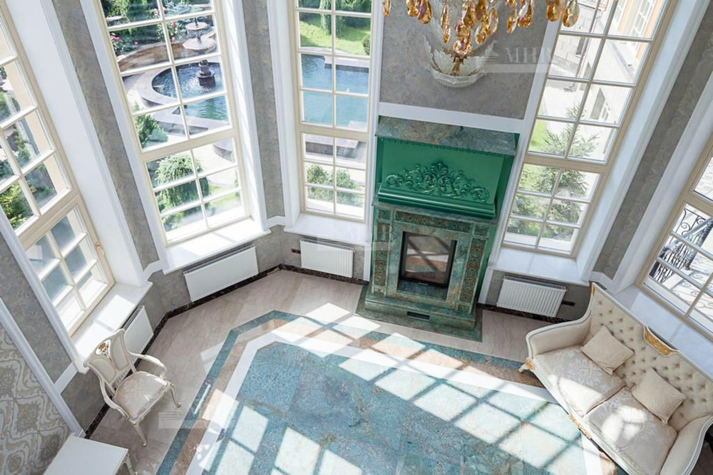 Основная площадь всех построек 1 700 кв. м. Основной дом - 1200 кв. м, гостевой дом - 500 кв. м, гараж на 4-5 м/м. В доме есть все для комфортного проживания большой семьи, а имеено спа-комплекс, который включает в себя бассейн, сауна, хаммам, тренажерный зал, комната отдыха, лифт для удобства. В доме 10 спален со своими санузлами, ванными комнатами, душевыми и гардеробными. Планировка по запросу.