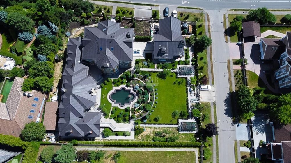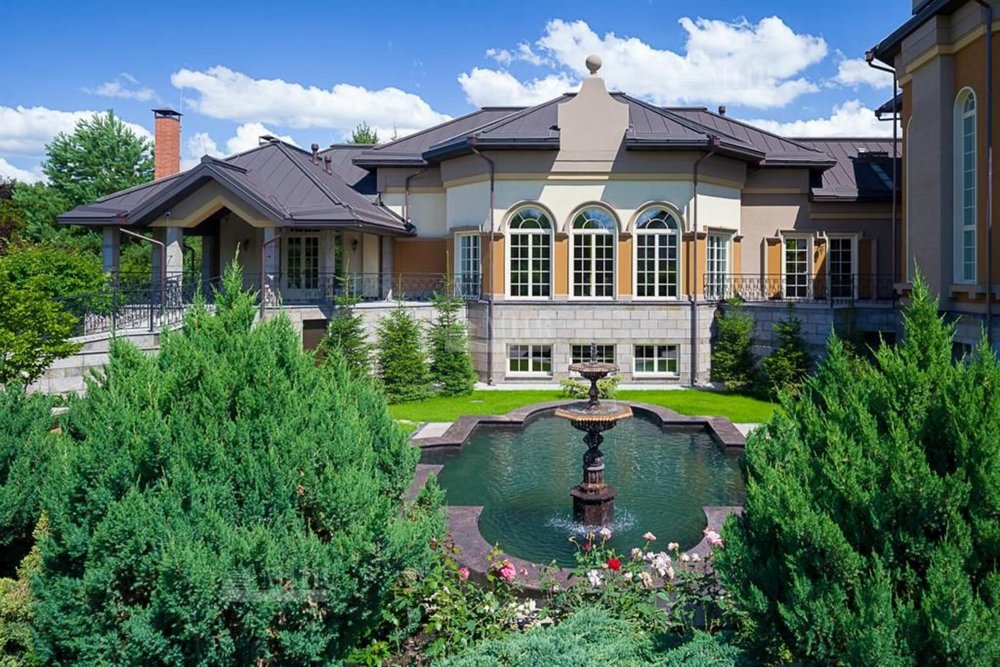 Роскошный живописный участок со своим фонтаном, по периметру обрамлен туями, плодовыми деревьями и голубыми елями.