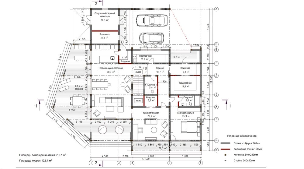 спальня с санузлом, котельная, кладовая для спортивного и садового инвентаря, навес для авто.
