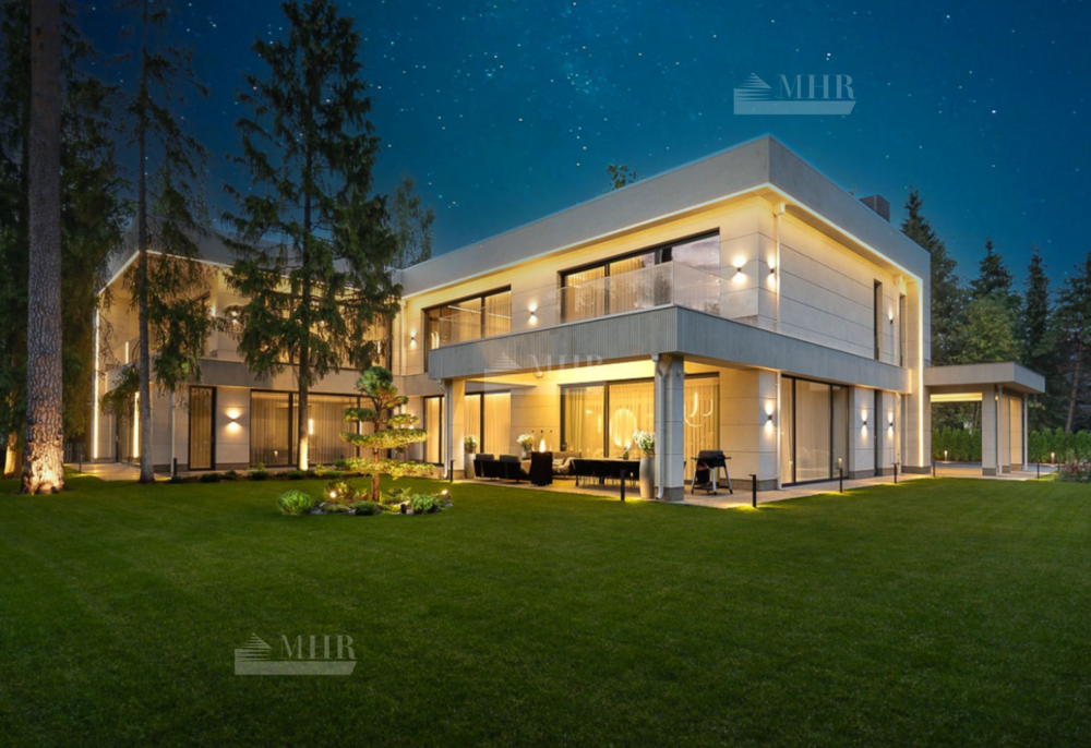 Предлагаем к покупке современный и стильный коттедж, расположенный на приватном лесном участке.