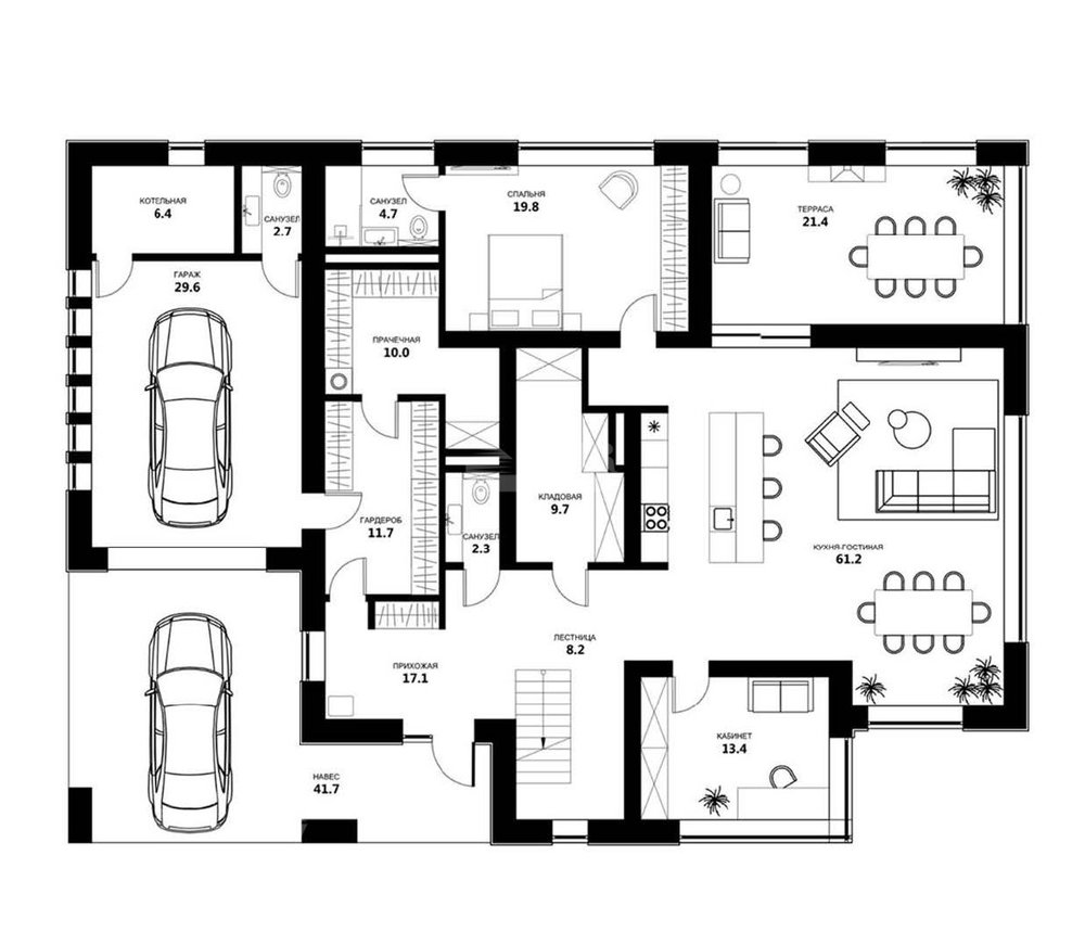 Продуманная и логичная планировка рассчитана так, чтобы вся семья чувствовала себя дома комфортно.