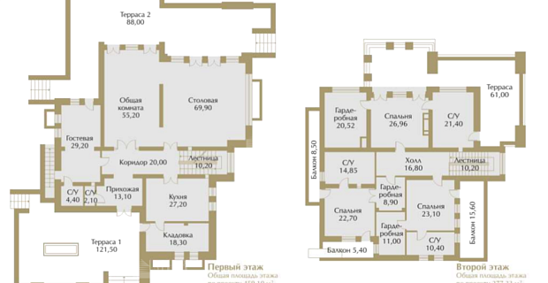 2 этаж: спальня с душевой и с/у, спальня с ванной комной и с/у.