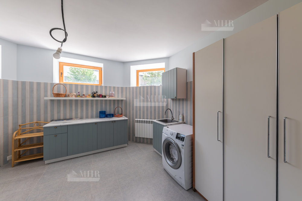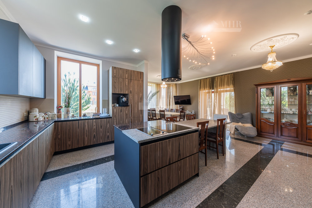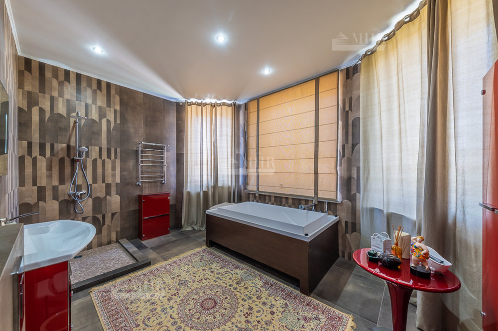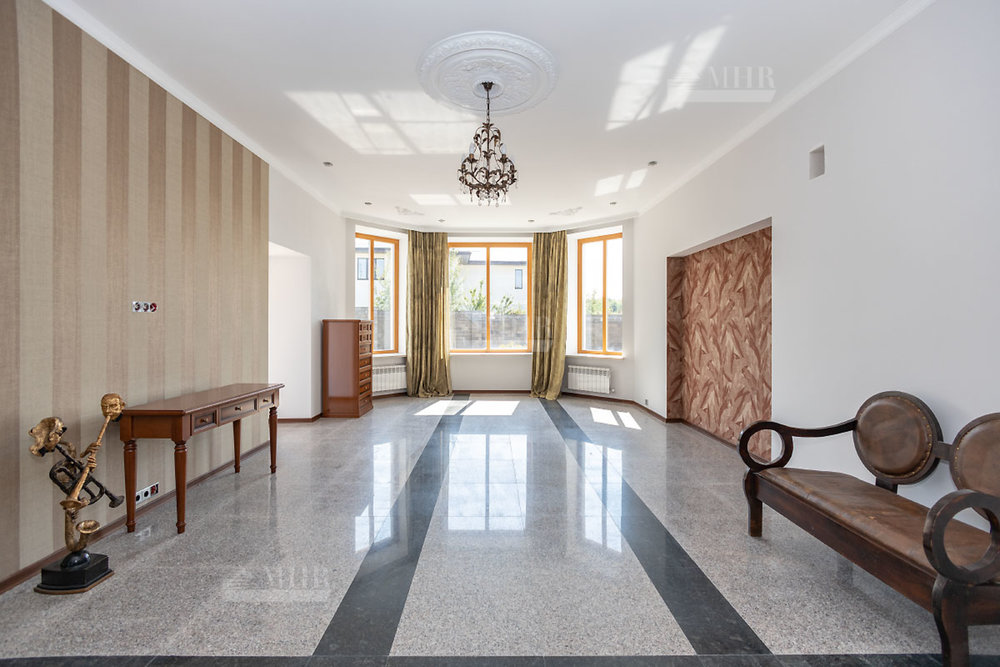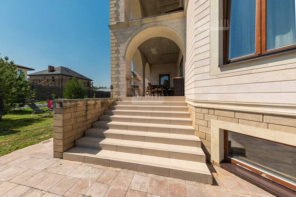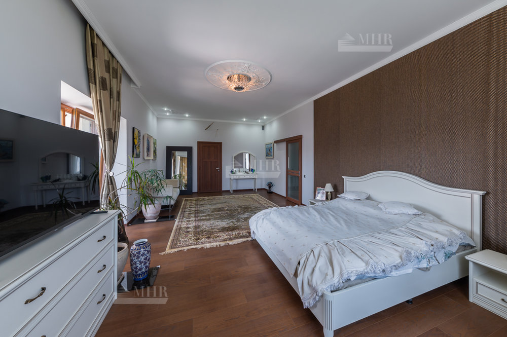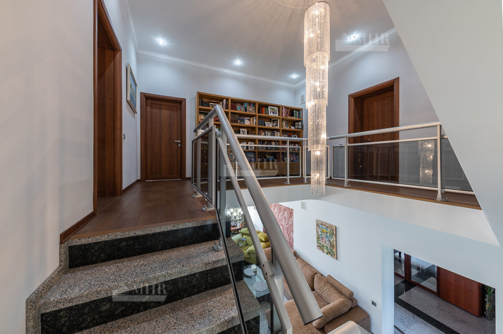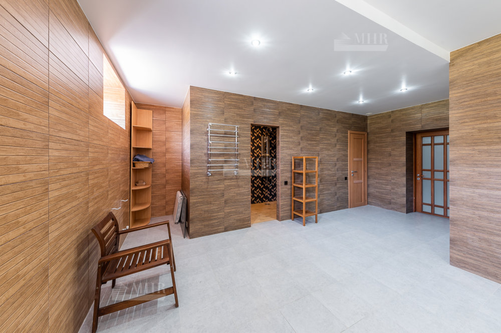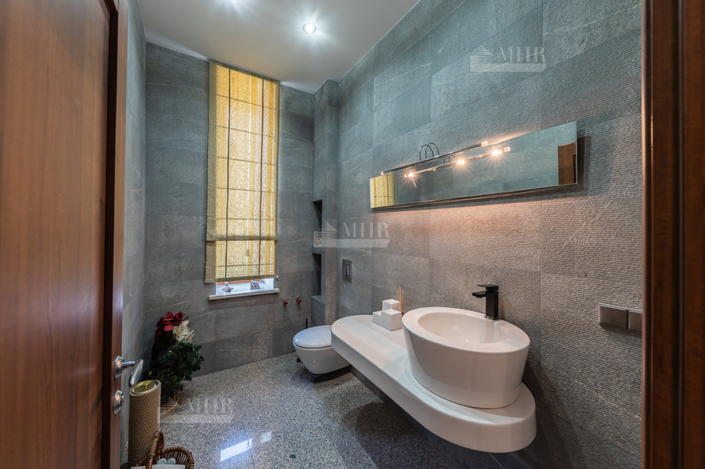 Цоколь: квартира для персонала (две комнаты со своим санузлом и кухней), бойлерная, сауна и хаммам, душевые и санузел, постирочная, гардеробная, винный погреб, кладовая.